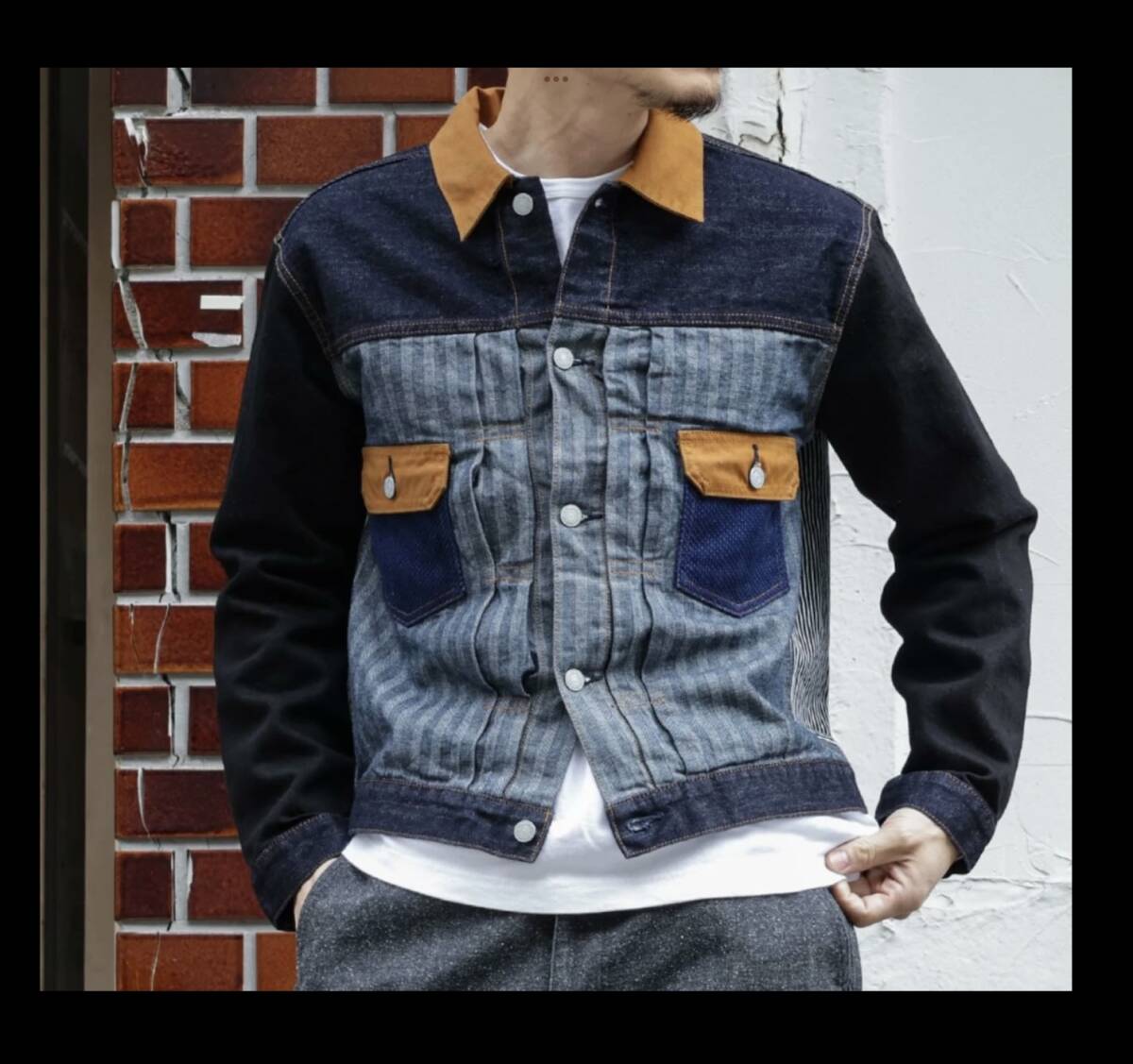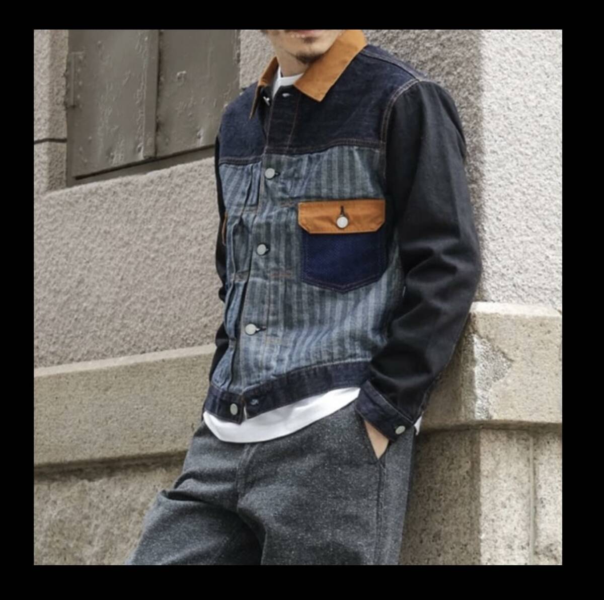 ★ ライフスタイルマガジンライトニングなどで人気のデニムの生産地岡山県を代表する『児島ジーンズ』からダック素材、刺し子、インディゴデニム、ヒッコリーストライプ、ヘリンボーン生地をミックス使用したワンウォッシュ加工 ジャケットです。 コダワリの MADE IN JAPANです。