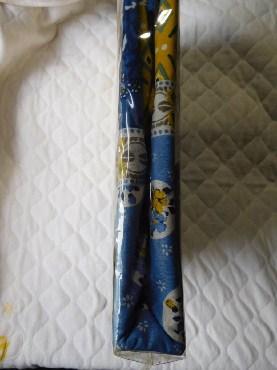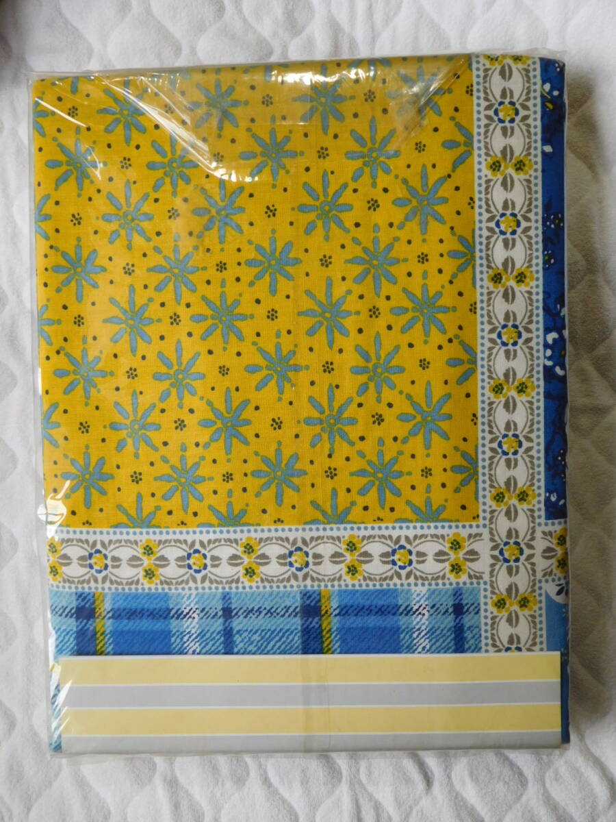 ・ミラベル ブルー/ブラウン・サイズは140×210cm・品質は綿100%(防縮加工)・両面プリントと表示されています。