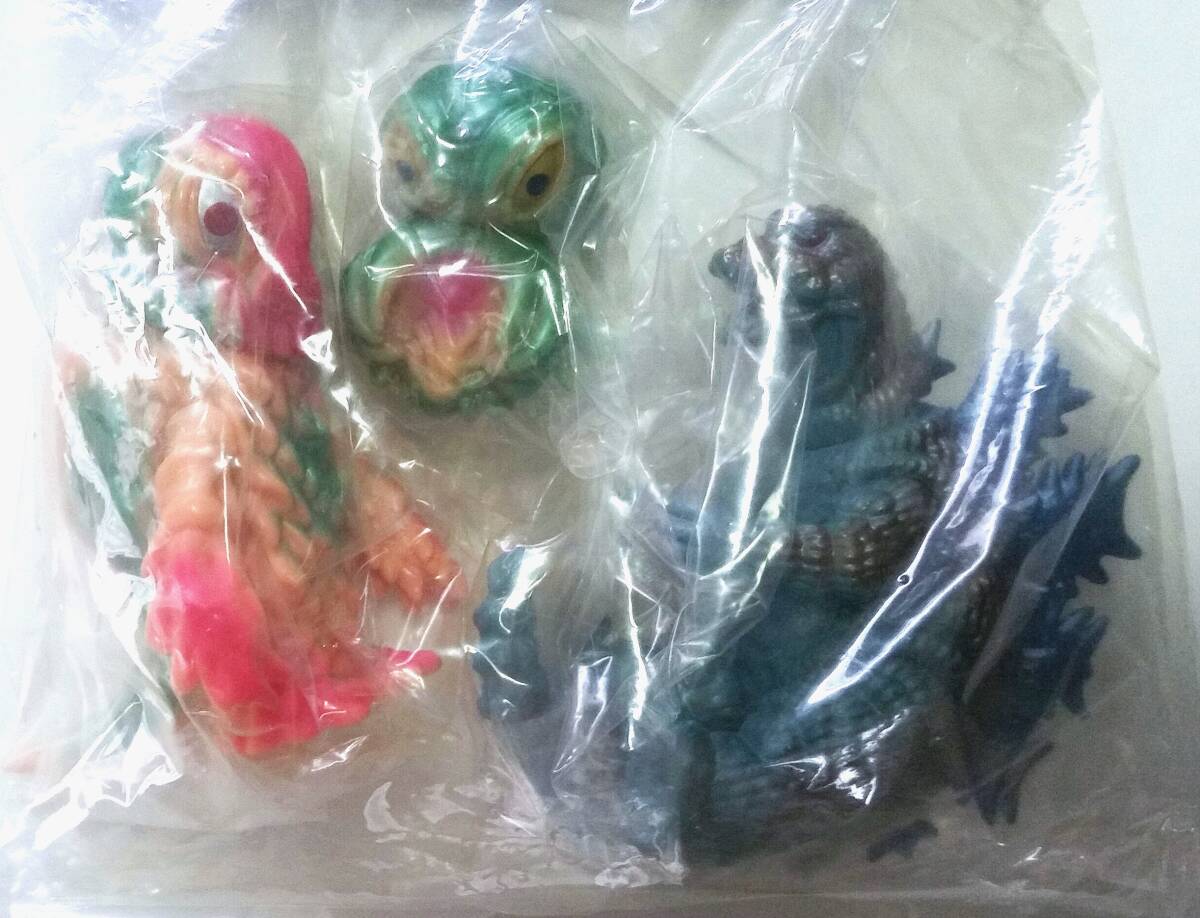 飛行するゴジラ直立状態のヘドラゴジラに抱えられたヘドラ3体セットです。