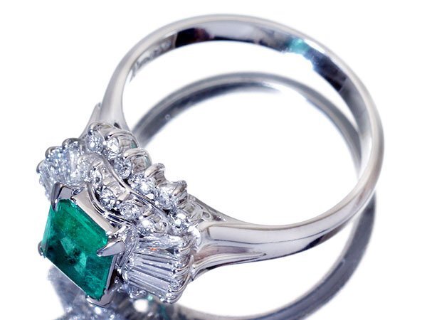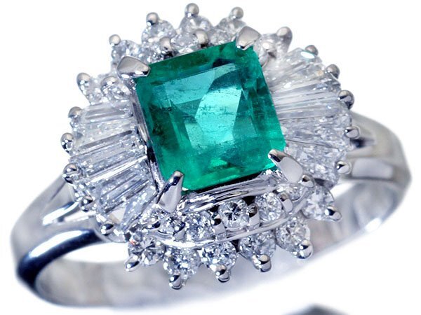 良質なエメラルドグリーン煌く良質天然エメラルド0.69ct&ダイヤモンド総計0.58ctを素敵に宝飾した、高級Pt900リングを1円から特別大放出致します!
