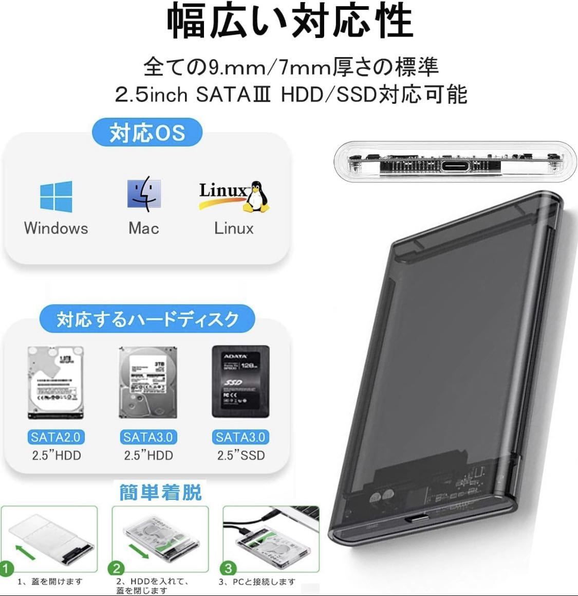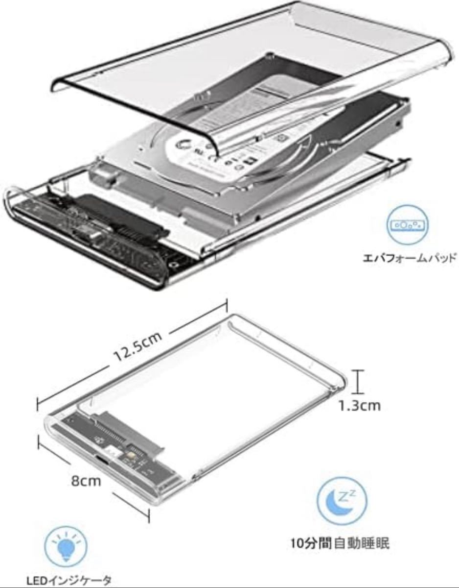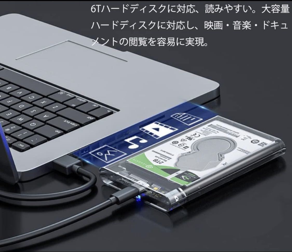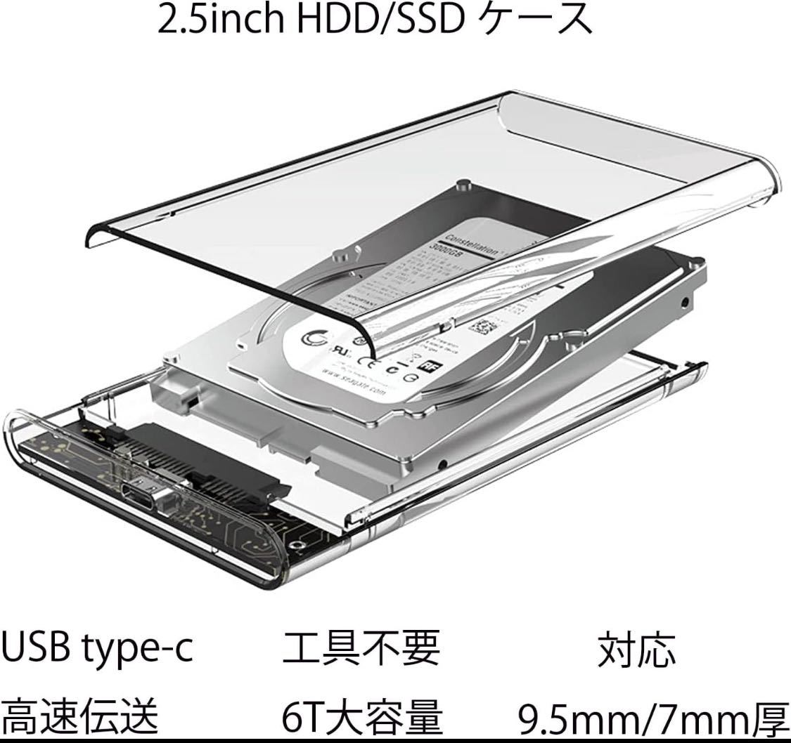 2.5インチ HDD/SSD ケース6Gbps高速転送 USB-C ハードディスクケース 透明 USB 3.1 9.5mm/7mm 両対応 6T対応 SSDケース ボックス SATA III 外付けハードディスク UASP対応 Windows/Mac/Linux/PS4/Xbox等適用
