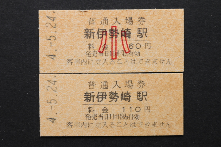東武鉄道地紋入り入場券 新伊勢崎駅 大人券小児券2枚セット 110