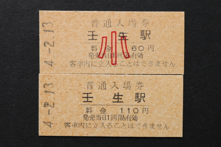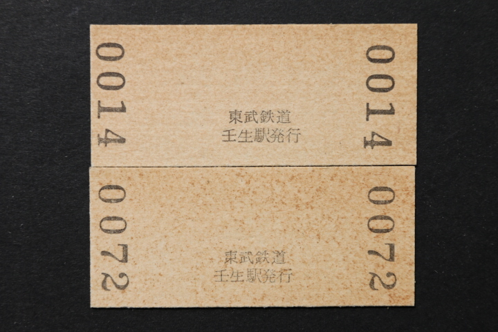 東武鉄道地紋入り入場券 壬生駅 大人券小児券2枚セット 110