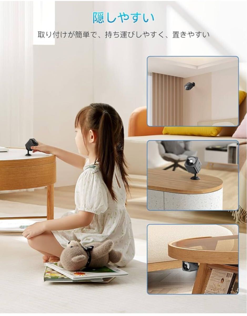 取り付け簡単:取り付けが簡単で、持ち運びしやすく、置きやすい。小型カメラは磁石を持っていて、磁石に吸着しやすいです。