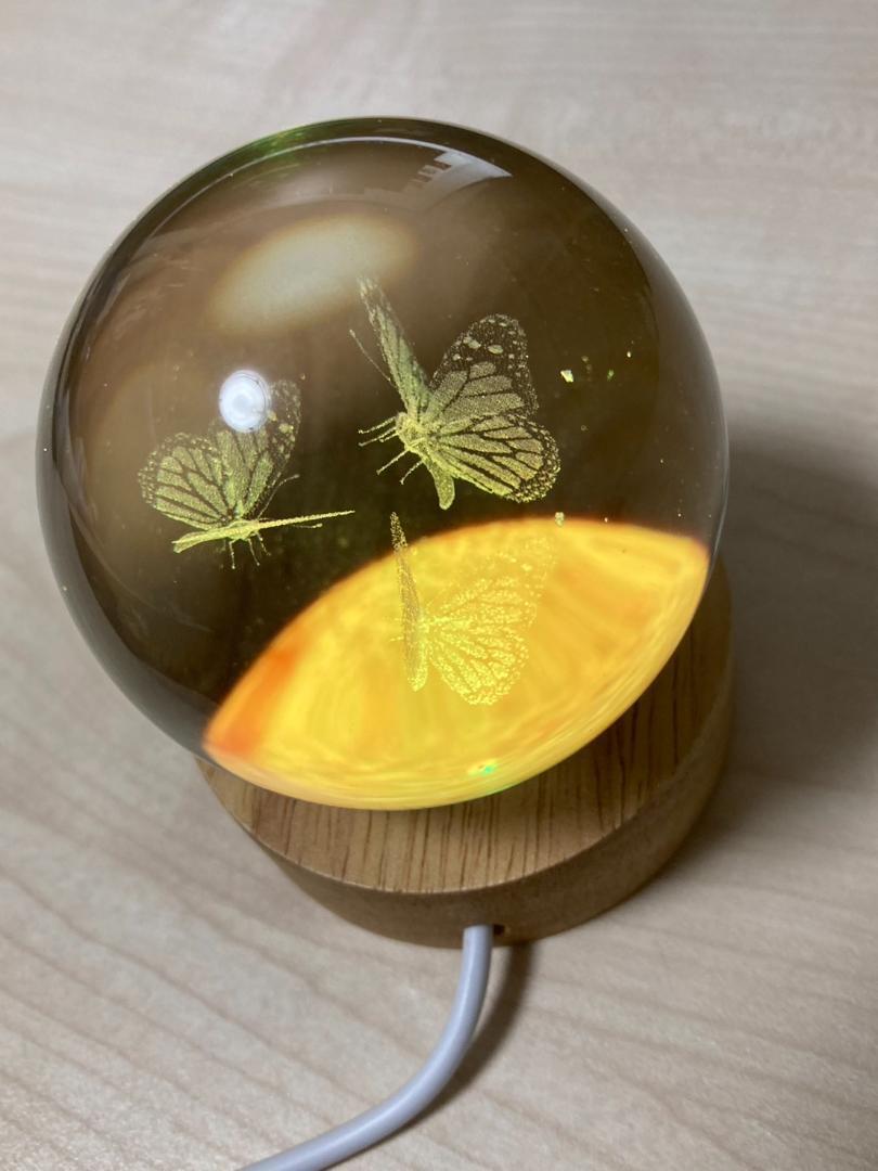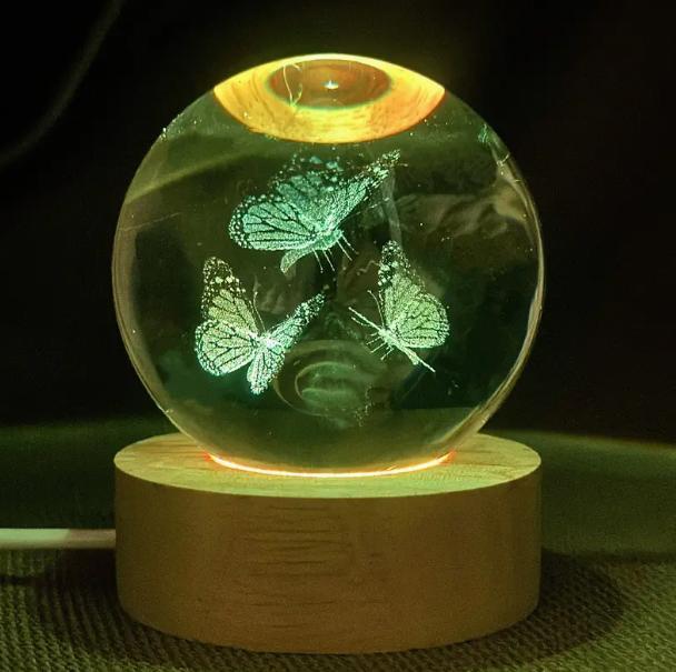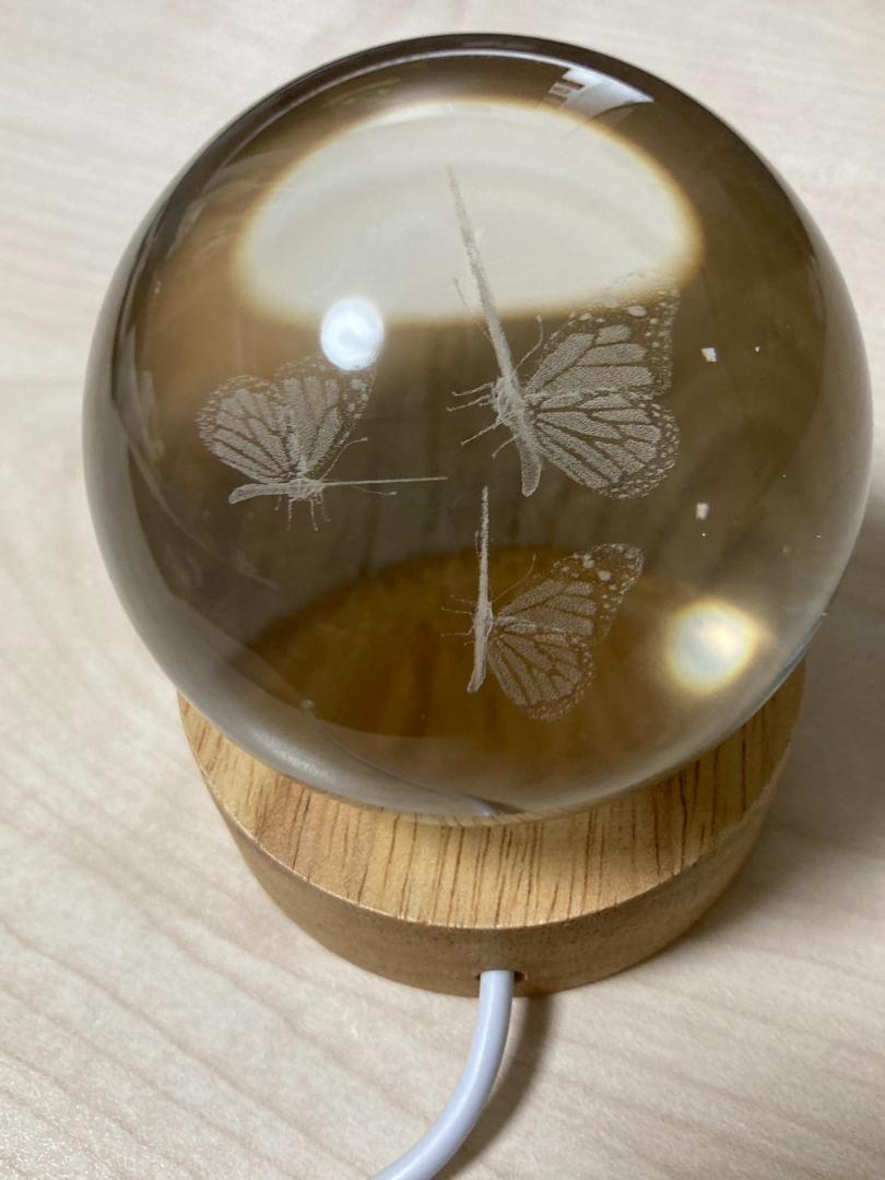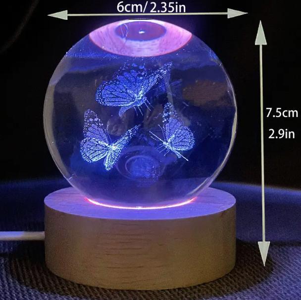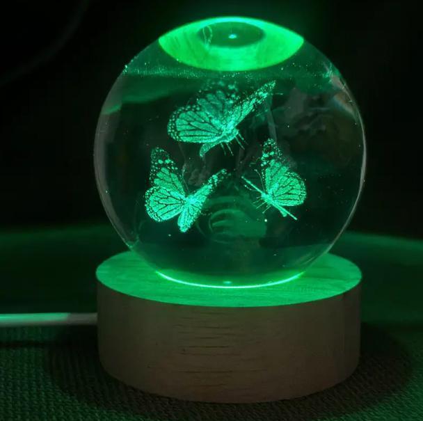 蝶 の 七色に変化するライト 3D クリスタルボール。