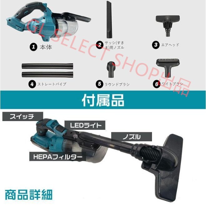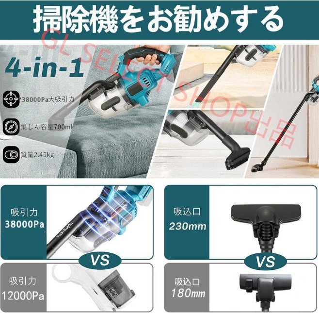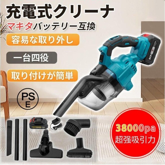 掃除機 充電式クリーナ コードレス 業務用 38000Pa 電動集塵機 ブロワー マキタ電池 バッテリー互換対応 小型 4種類吸引 ノズル 軽量A160