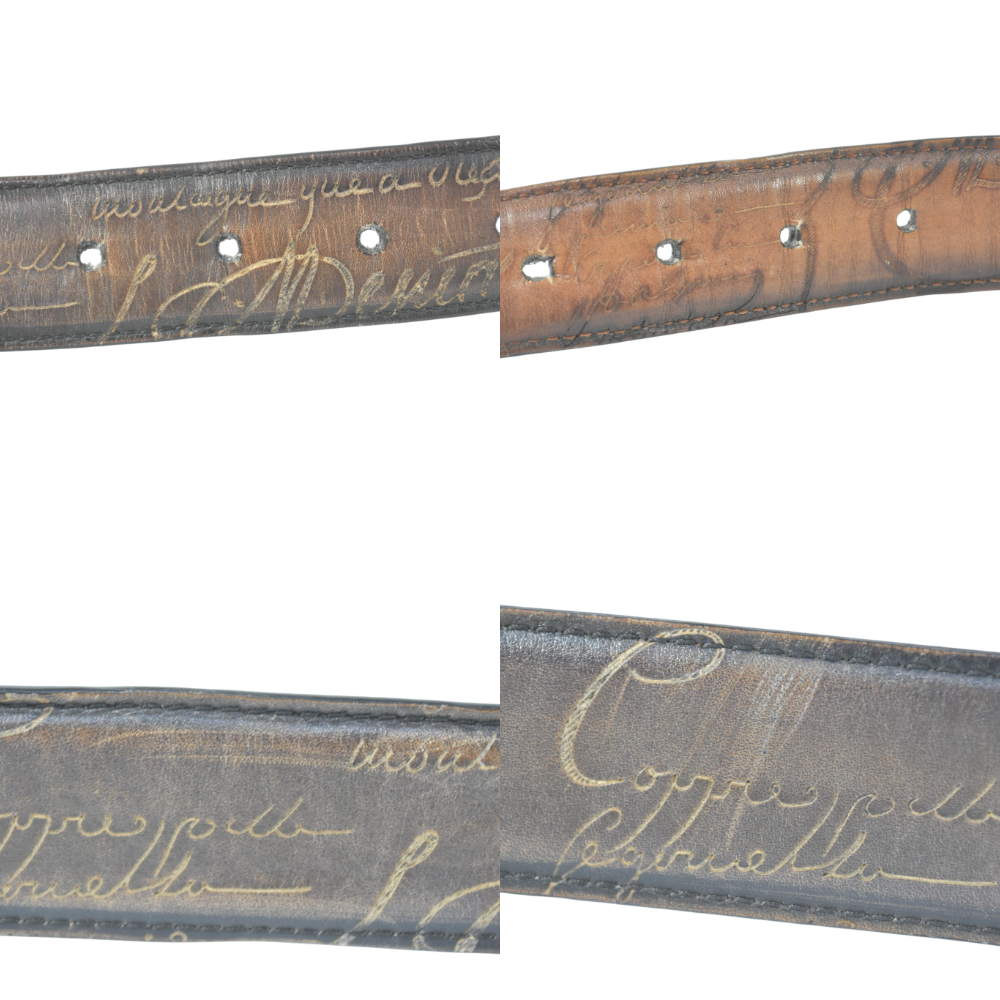ベルルッティのスクリット カリグラフィ パティーヌ メンズ レザーベルト エッセンスです。 こちらの商品は一般的な使用感がございます。 外観はバックルに傷、剥げ ベルトにスレ、しわ、スレ傷、穴に使用感がございます。 ※デリケートな商品ですので 若干の小傷、スレ等は予めご了承下さい。 ですがまだまだご使用頂けます。 複数サイトで販売しておりますのでご注文後でも 売り切れとなる場合がございますので予めご了承下さい。 モデル名 Essence サイズ カットされているため表記無 実用寸法 88cm~98cm 幅3.2cm ※カットして短く調整可能です。 付属品 なし 参考上代 *** 商品ランク⇒外観B (下記ランク表をご参照下さい) N 全くの新品状態 S 新品同様だが多少の小傷あり(未使用品) A 多少の小、中傷はあるがかなり程度の良い商品 B 小、中傷、汚れがかなり見受けられる商品 C 小、中傷、汚れが多く大きな傷も見受けられる商品 D 補修が必要な商品 コメント 商品に関するお問い合わせはお電話でも受け付けております。 0120-15-8412 までお問い合わせください。 店頭にて現物確認をご希望の場合は必ず来店予約をお願い致します。 質問ございましたらお気軽にお願いします。 自己紹介欄をお読みください。 ★★★注意★★★ ■ご購入後にいろいろご質問される方がおられますが、疑問点などございましたら納得がいくまで必ずご購入前にご質問ください。 ■購入は責任を持って行ってください! ■新規の方も歓迎いたしますが、 キャンセル歴が多い方、評価が著しく悪い方などは 当方の判断で削除させて頂く場合もございますのでご理解下さい。 ■必ず落札後24時間以内にご連絡頂ける方、ご連絡後、金融機関2営業日以内にご入金いただける方のみご入札お願いします。 ■商品ランク表は保証するものではございません。 参考程度にお考え下さい。 ■ご使用ののモニター環境により、商品の素材感や色合い等が、 実際の商品の色調と異なる場合がございます。 ご了承の上ご入札をお願いします。 ■当方の出品物はすべて実際の商品の画像を使用しております。 ■新品、未使用品でも自然なムラ、シワや、保管等によるわずかなキズ、汚れ等が有る場合がございます。必要以上に神経質になられる方は、入札前に今一度ご検討ください。 ■中古品につきましては中古品にご理解いただける方のみご入札下さい。極端に神経質な方はご遠慮下さい。 ■バック等に関しては型崩れを防ぐため 中に詰め物をして撮影しております。 ■クォーツ時計に関しましては発送前の検品時に電池切れが確認された場合は当社負担にて電池交換後の発送とさせて頂きます。 (発送までお時間を頂く場合がございます。) ■時計の保証期間は1ケ月間の自然故障のみでございます。 ■海外発送をご希望の場合は質問欄よりお問い合わせ下さい。 ★★商品の返品について★★ ■サイズ違い、イメージ違い等お客様のご都合による返品は いかなる場合も受付しておりませんのでご了承ください。 ■万一商品が偽物であった場合は責任を持って 100%返金対応させて頂きます。 ■原則返品不可 古物商許可証 兵庫県公安委員会 第631611500038号 (株)北詰商事 | |||