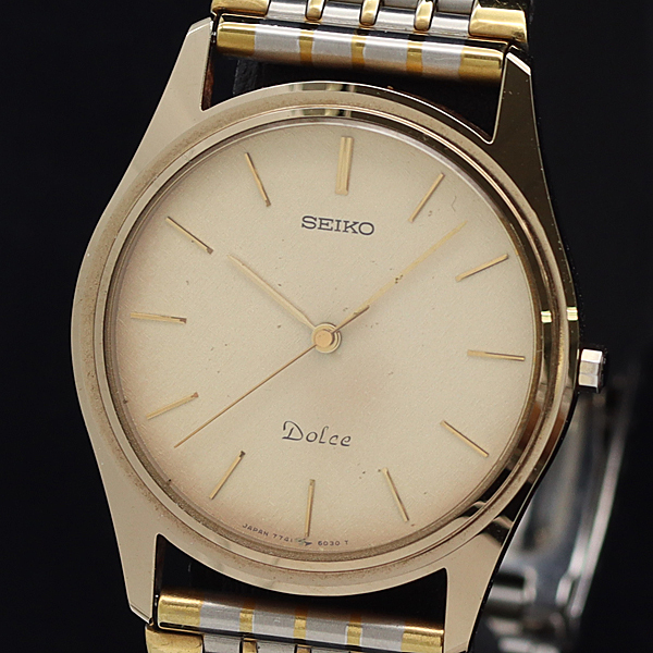 1円 稼働 セイコー ドルチェ 7741-6020 QZ アイボリー文字盤 メンズ腕時計 3835000 9BJY SMZ