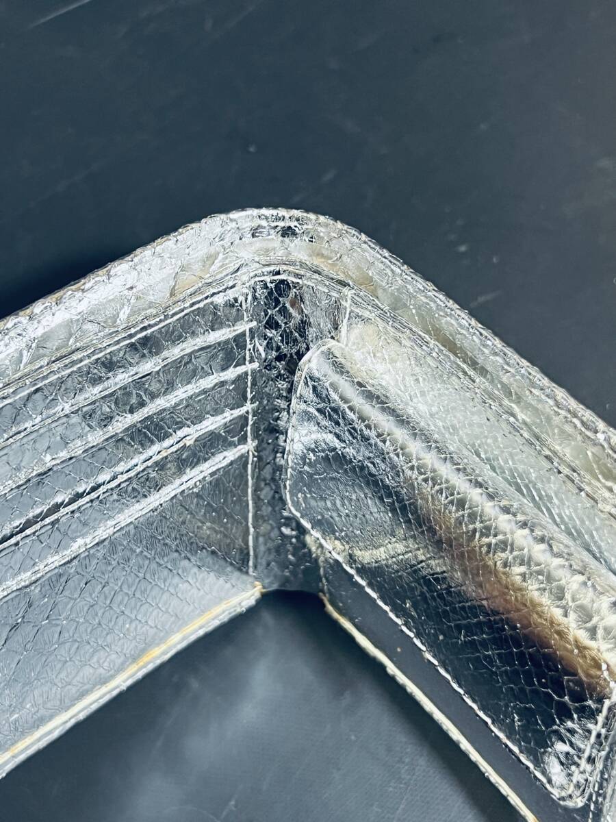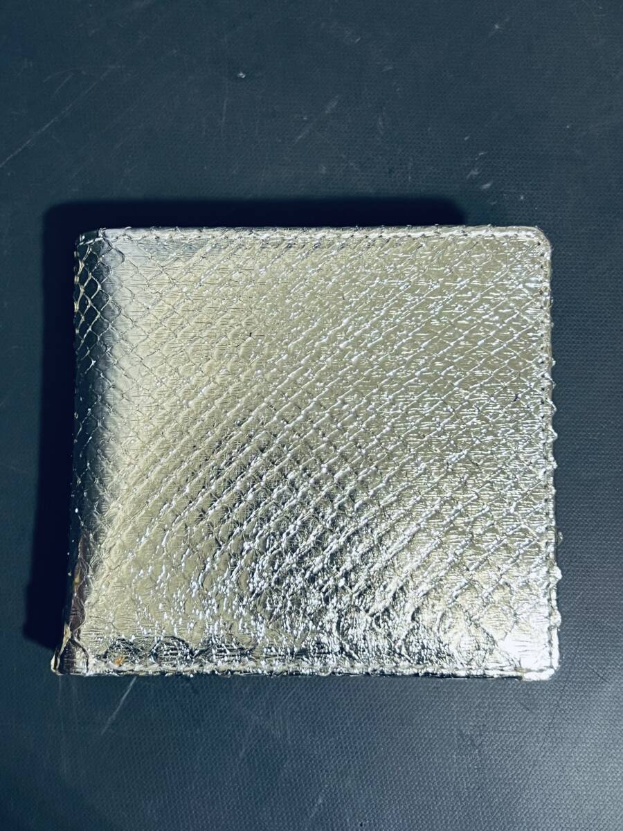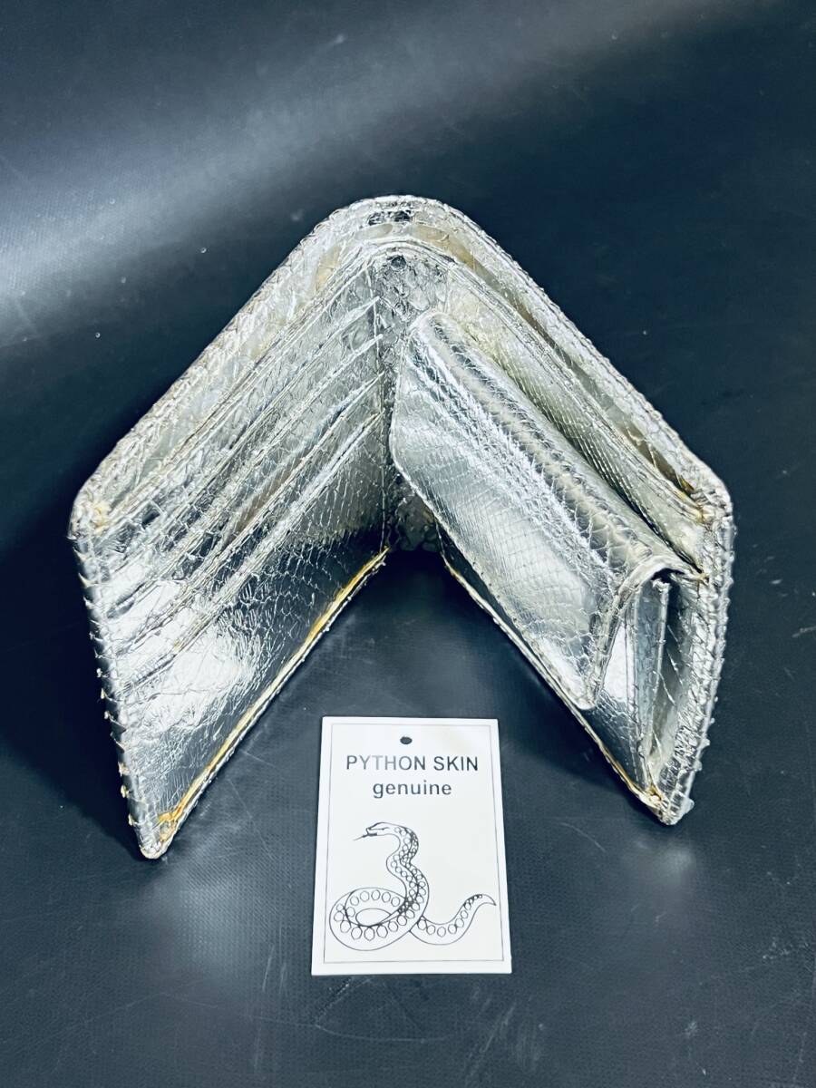 高級 【パイソン 二つ折り財布 銀色】 白蛇 春財布 小銭入れ有り カード お札 本革 本皮 金運UP ニシキヘビ 収納 男女兼用 プレゼント