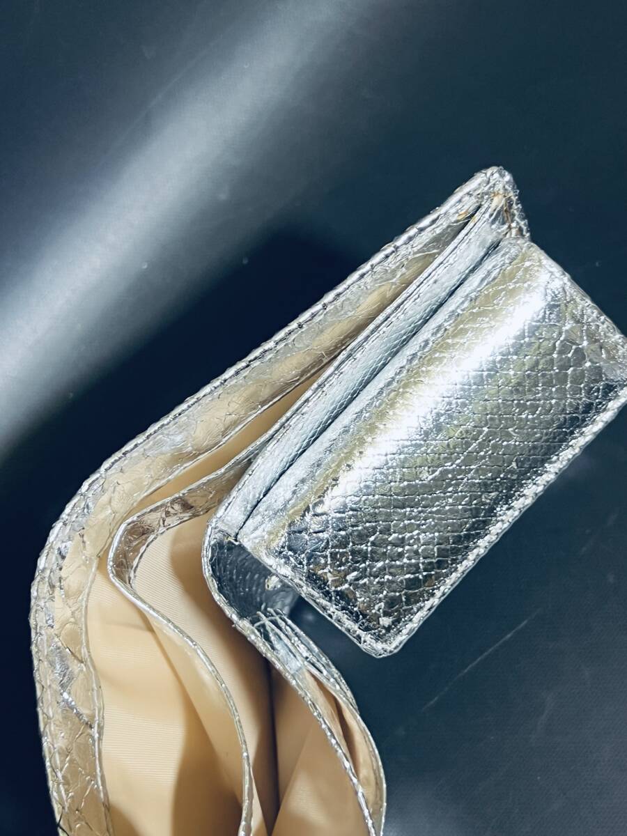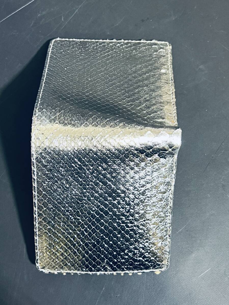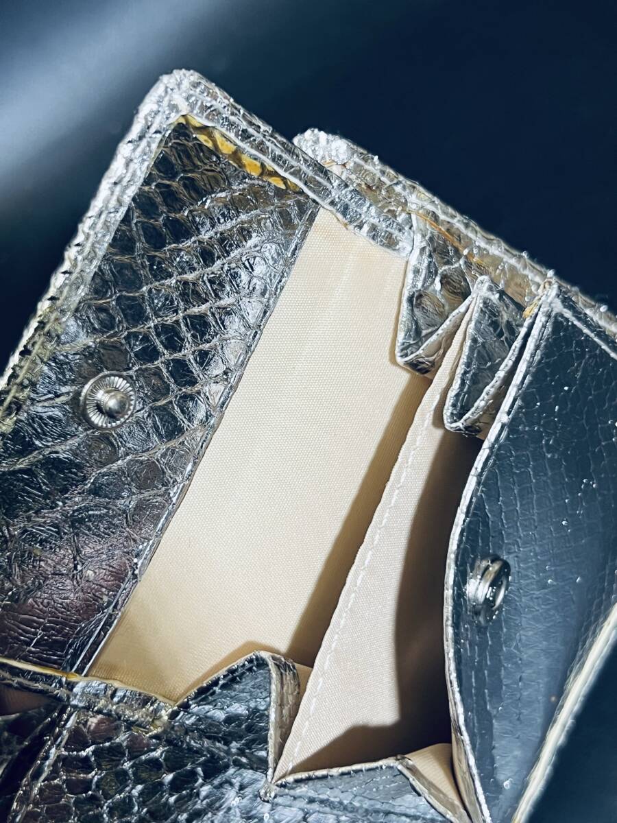 高級 【パイソン 二つ折り財布 銀色】 白蛇 春財布 小銭入れ有り カード お札 本革 本皮 金運UP ニシキヘビ 収納 男女兼用 プレゼント