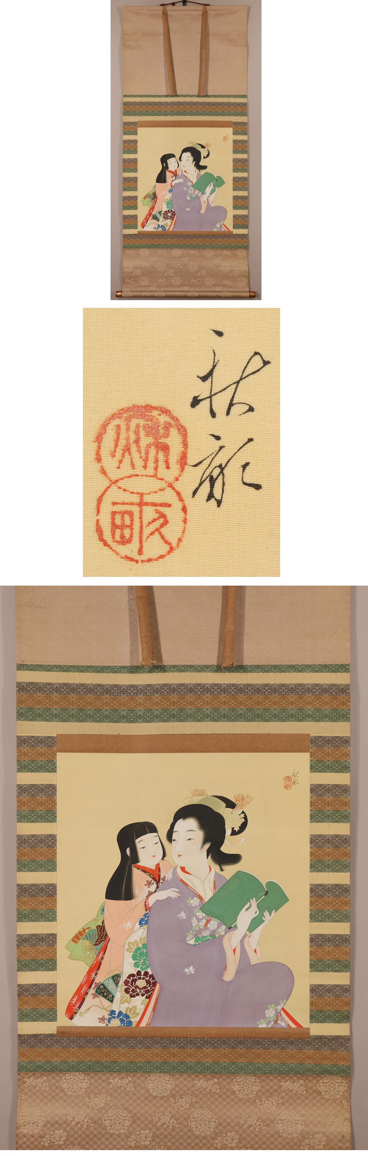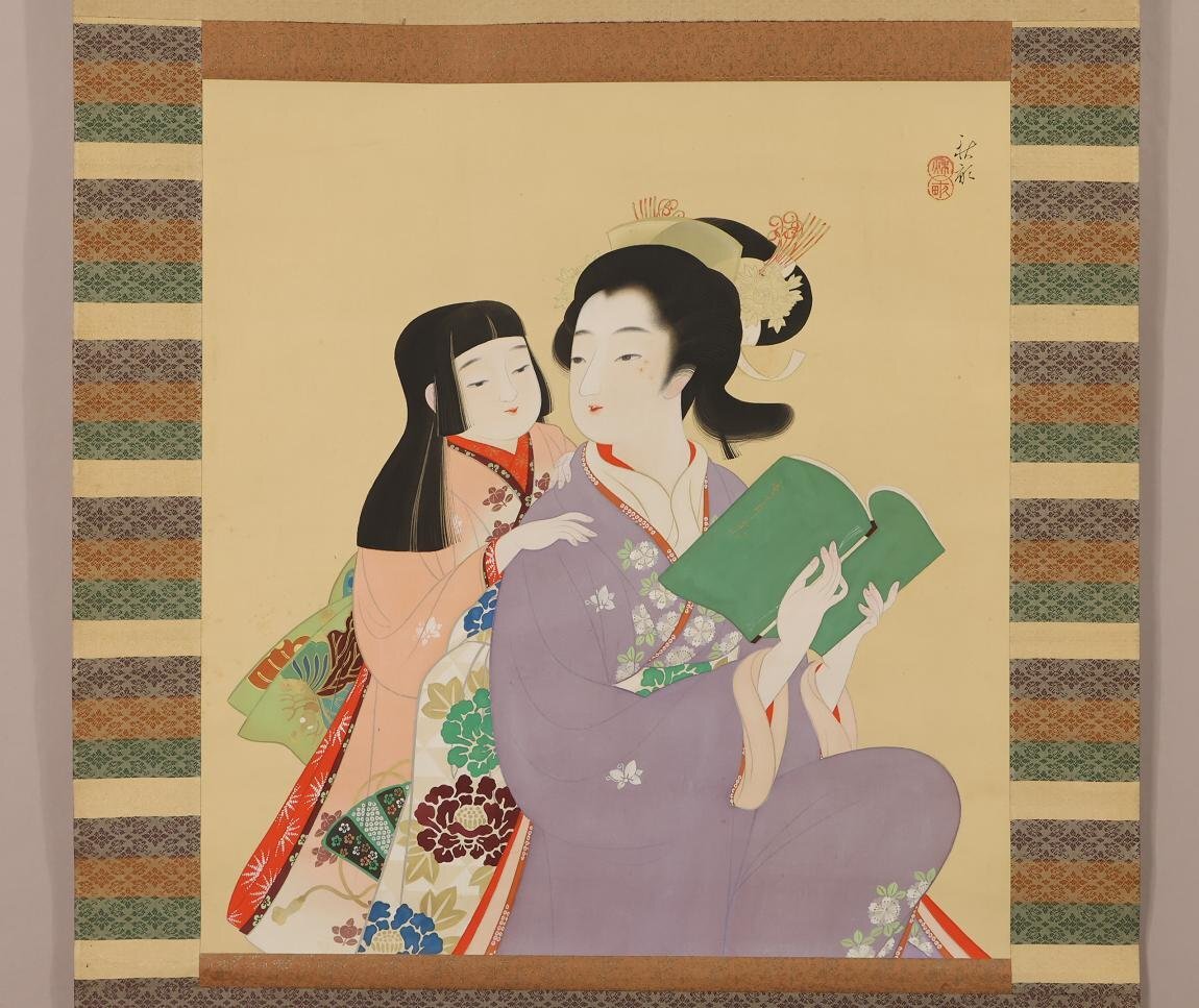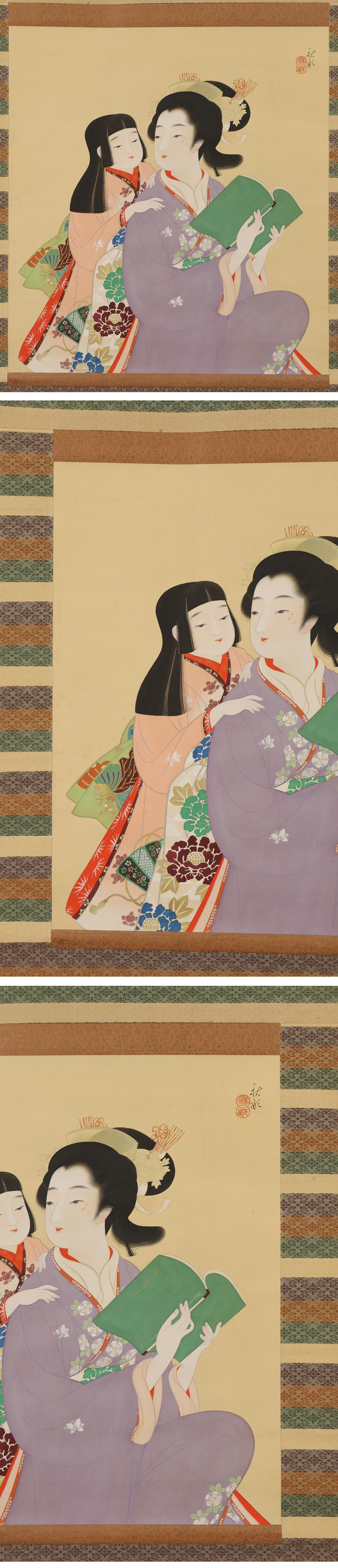 この作品は、肉筆・絹本により『姉妹之図』が描かれております。