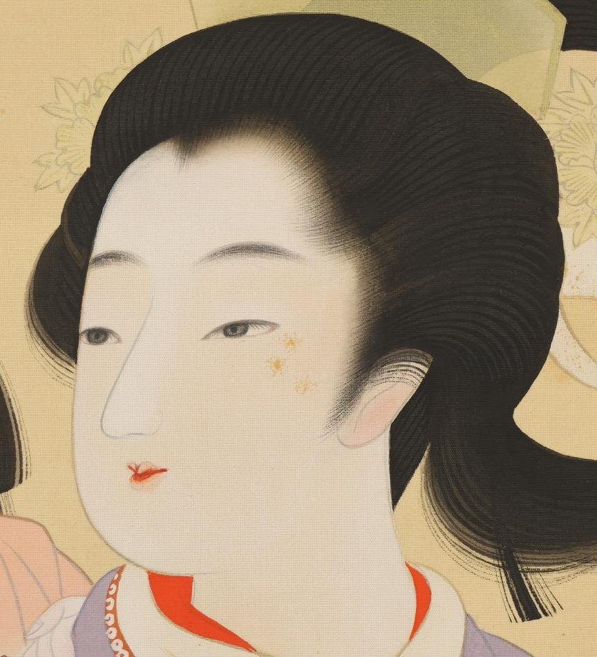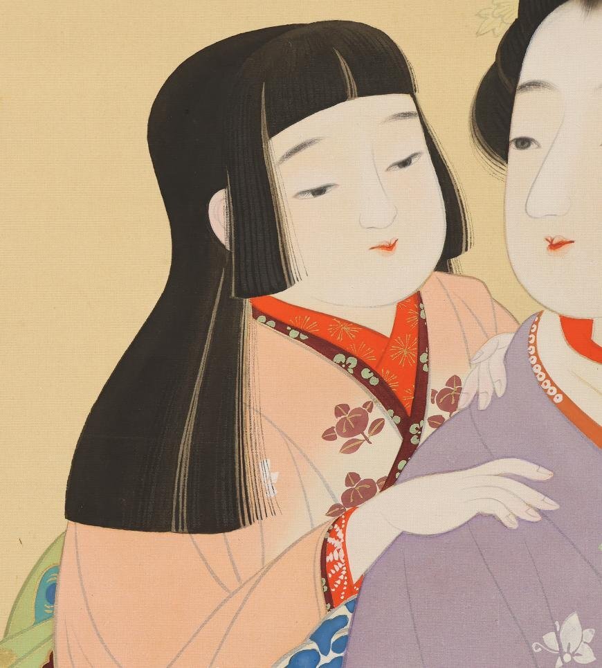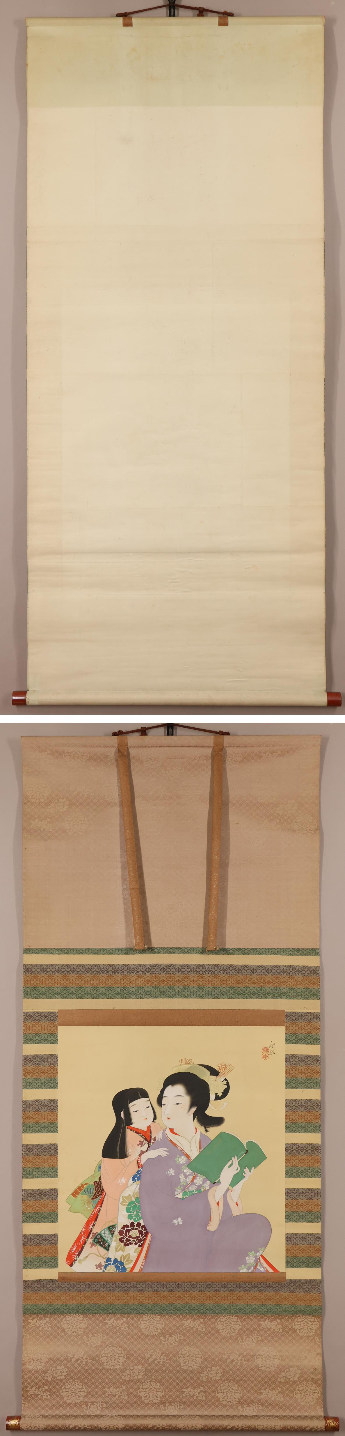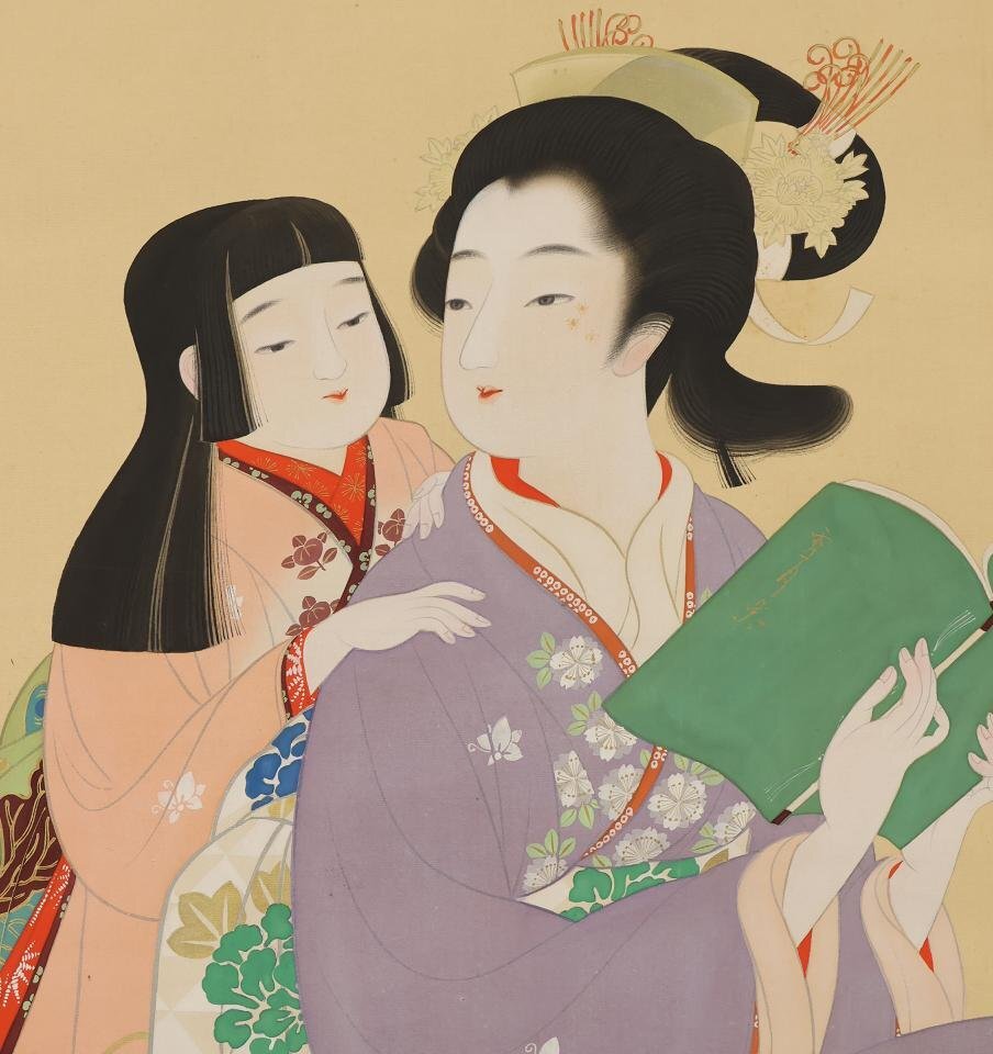 この作品は、肉筆・絹本により『姉妹之図』が描かれております。