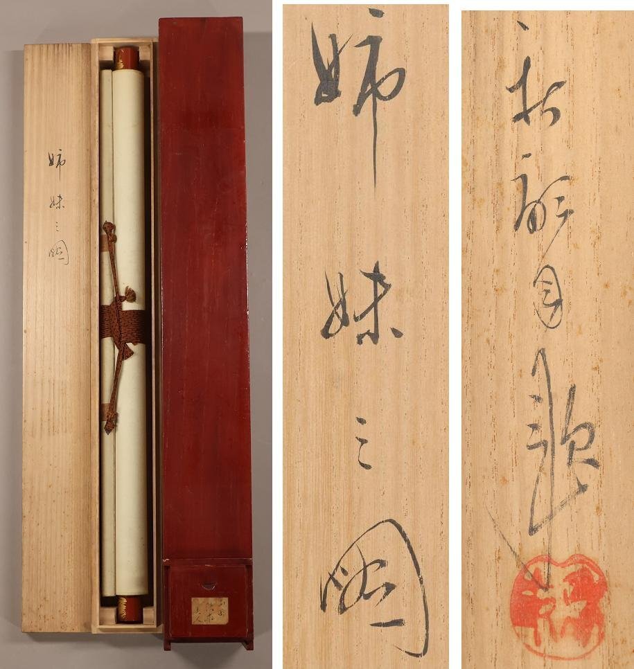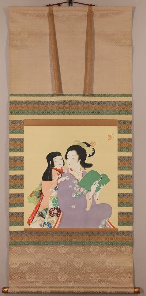 【真作】山田秋畝◆姉妹之図◆共箱◆二重箱◆美人画◆日本画◆熊本県◆肉筆◆絹本◆掛軸◆w842