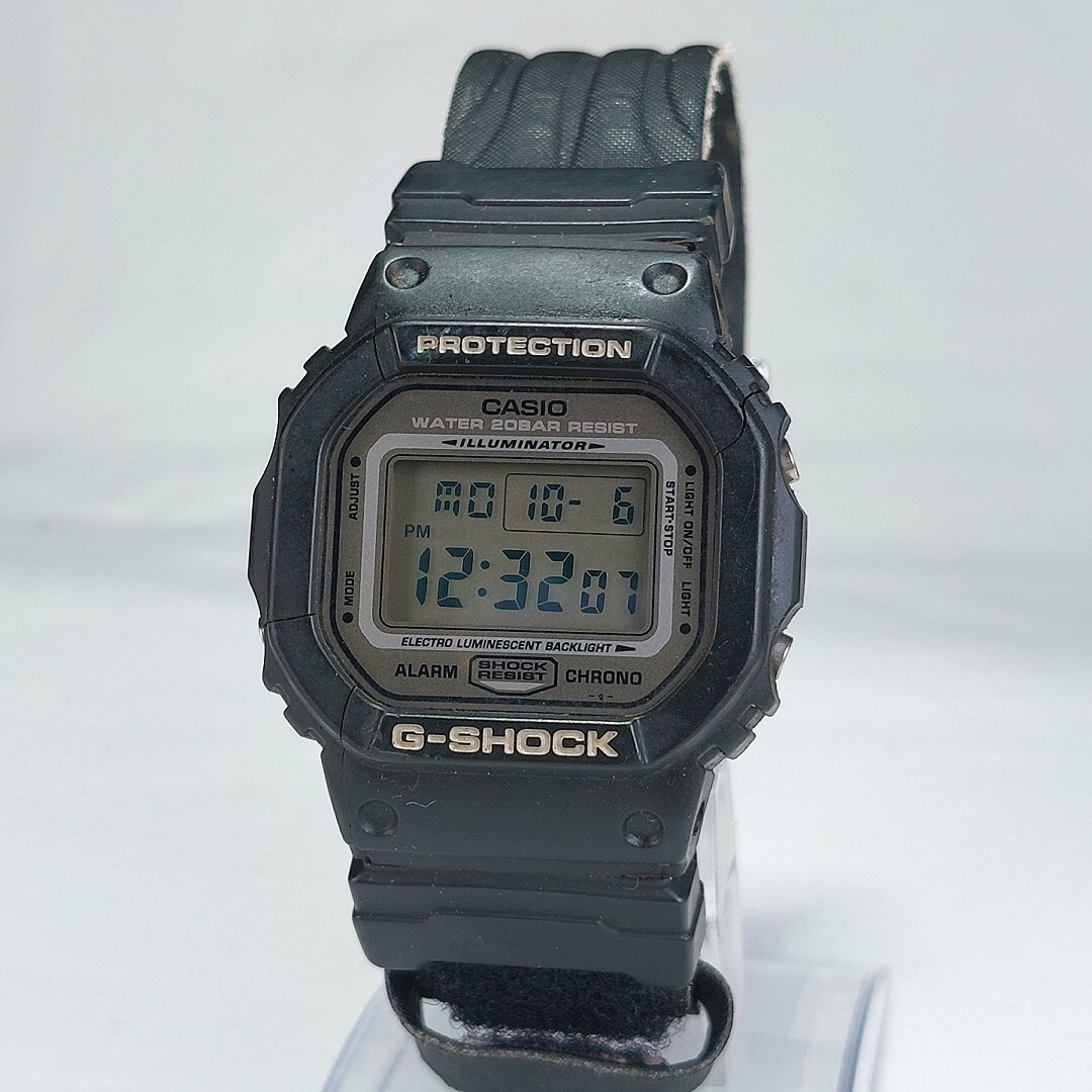 美品 G-SHOCK ジーショック DW-5600 デジタル クォーツ 腕時計 ブラック 布製ベルト マジックテープ 新品電池交換済み 動作確認済み