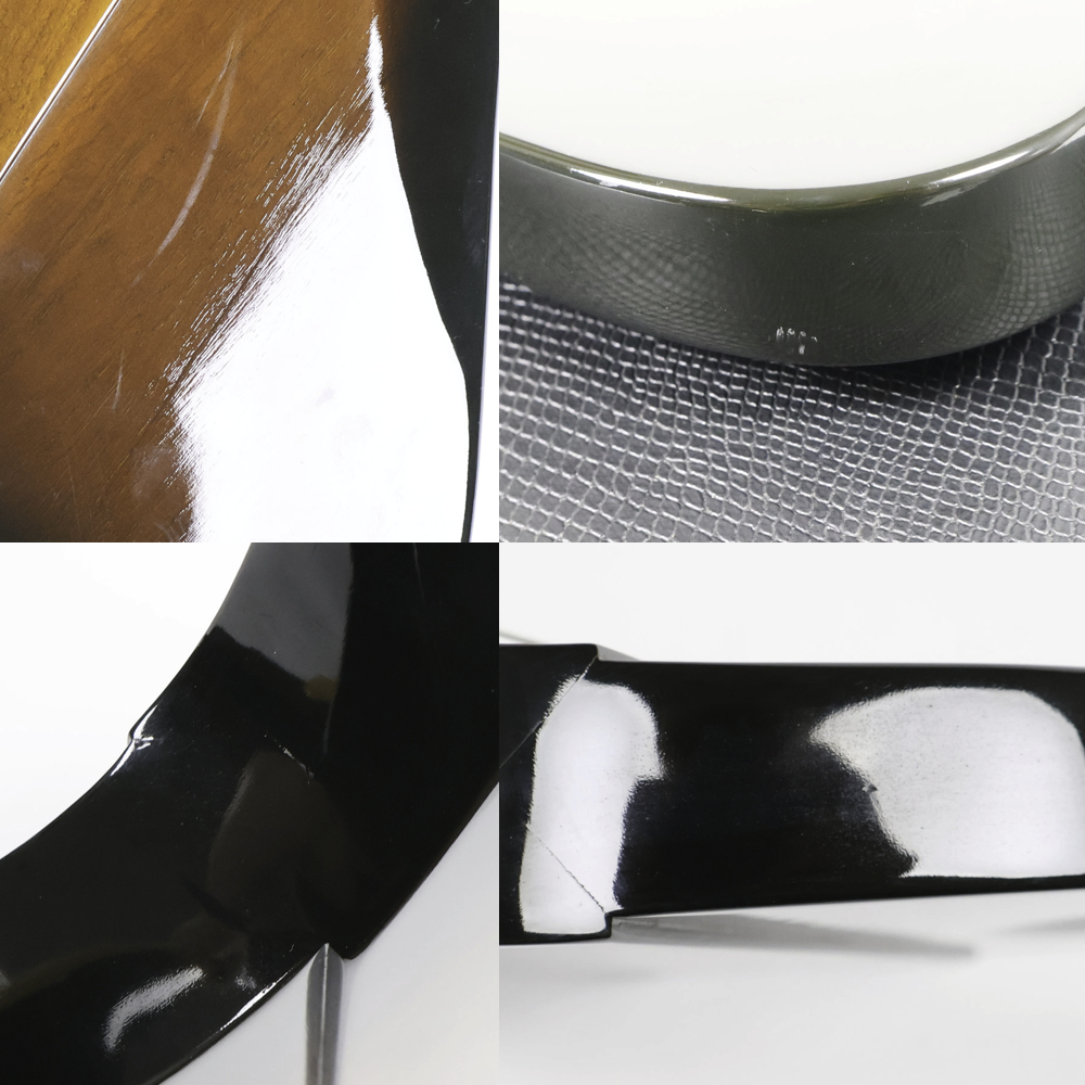 ボディーサイド6弦側のショルダー部、木部の継ぎ目に塗装クラックあり。