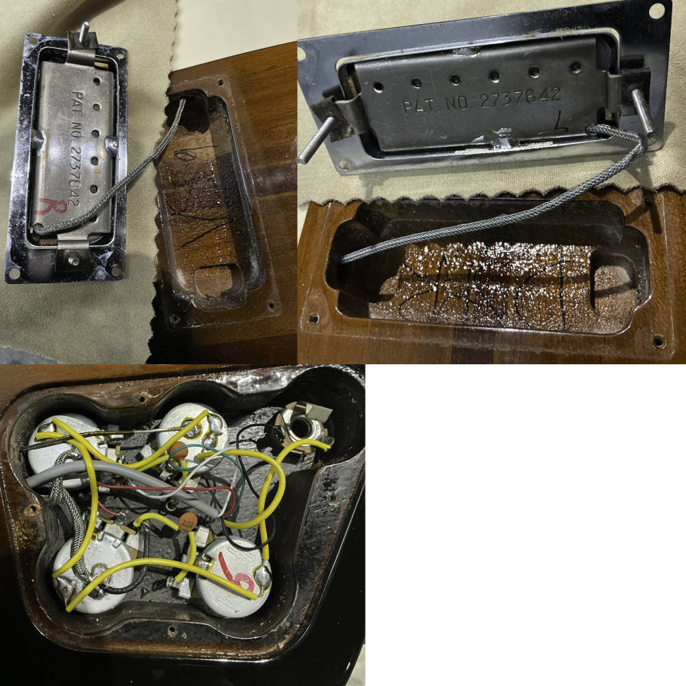 ピックアップは背面にナンバー刻印タイプ。ポット類もオリジナルのようです。