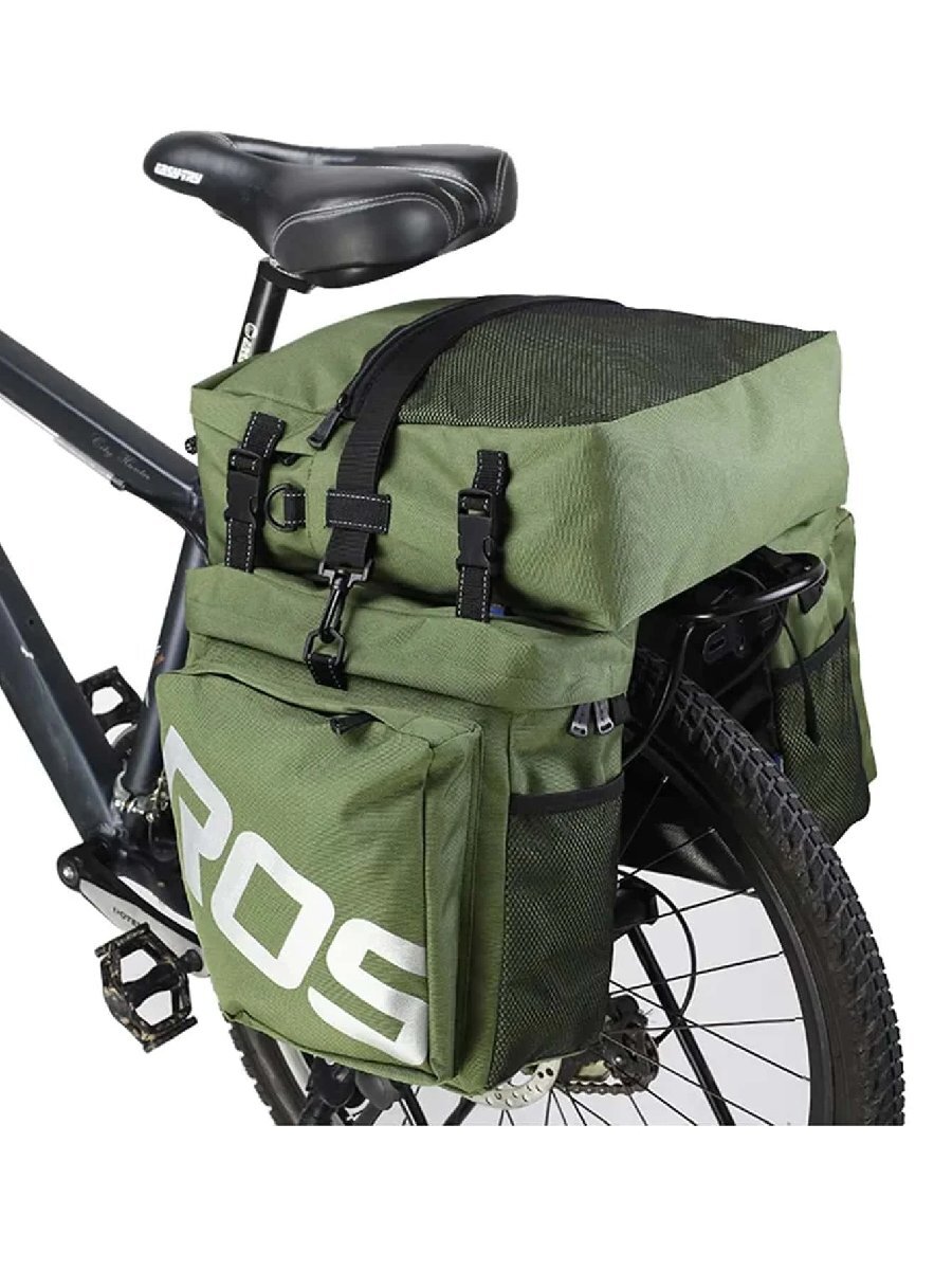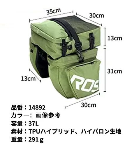 自転車 バッグ サイドバッグ 大容量 37L リアバッグ リアキャリア バイク サイクリング 荷台 防水 グリーン