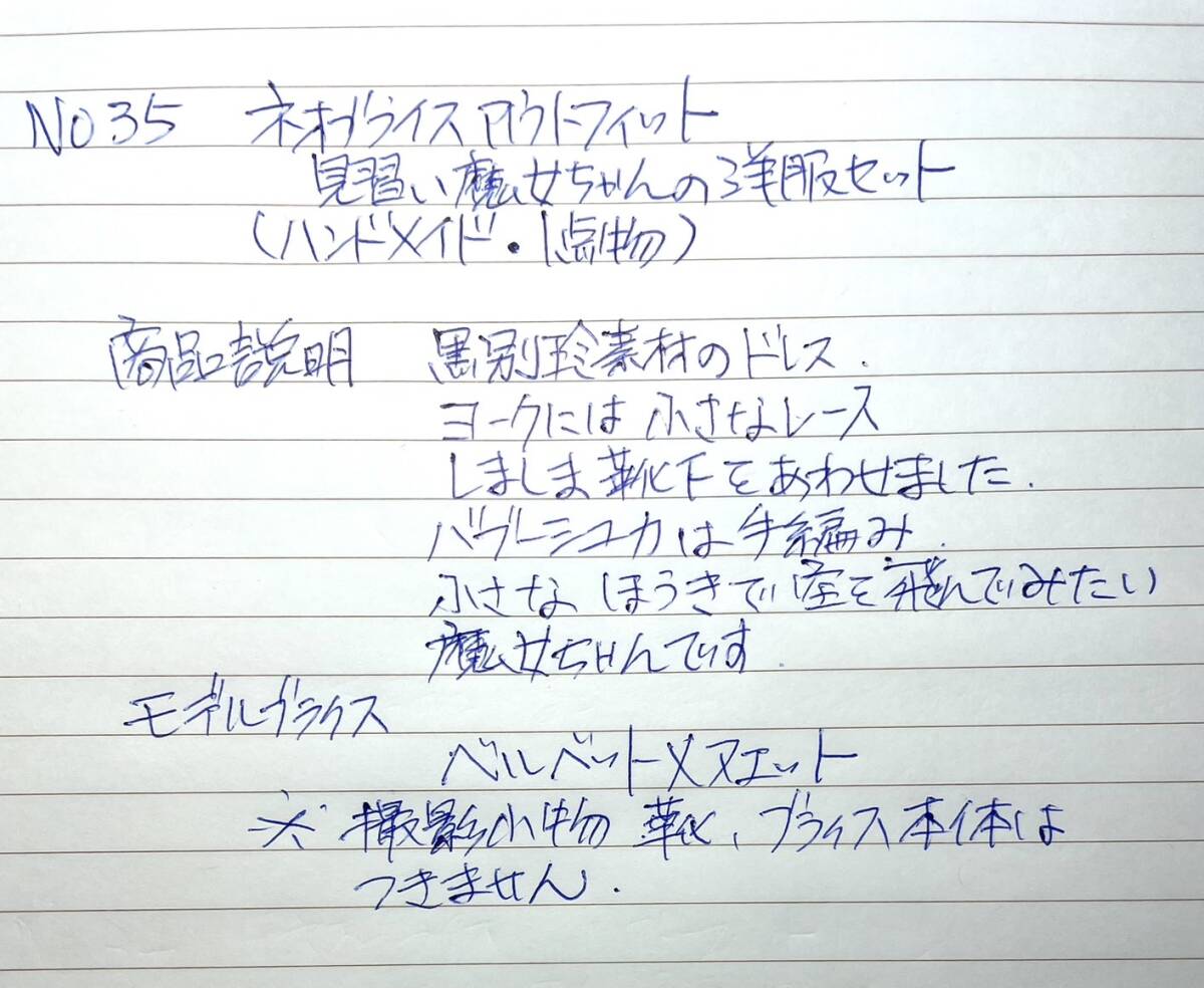 (ネオブライス用)アウトフィット・見習い魔女ちゃん洋服セット  〈ハンドメイド一点物・No.35〉
