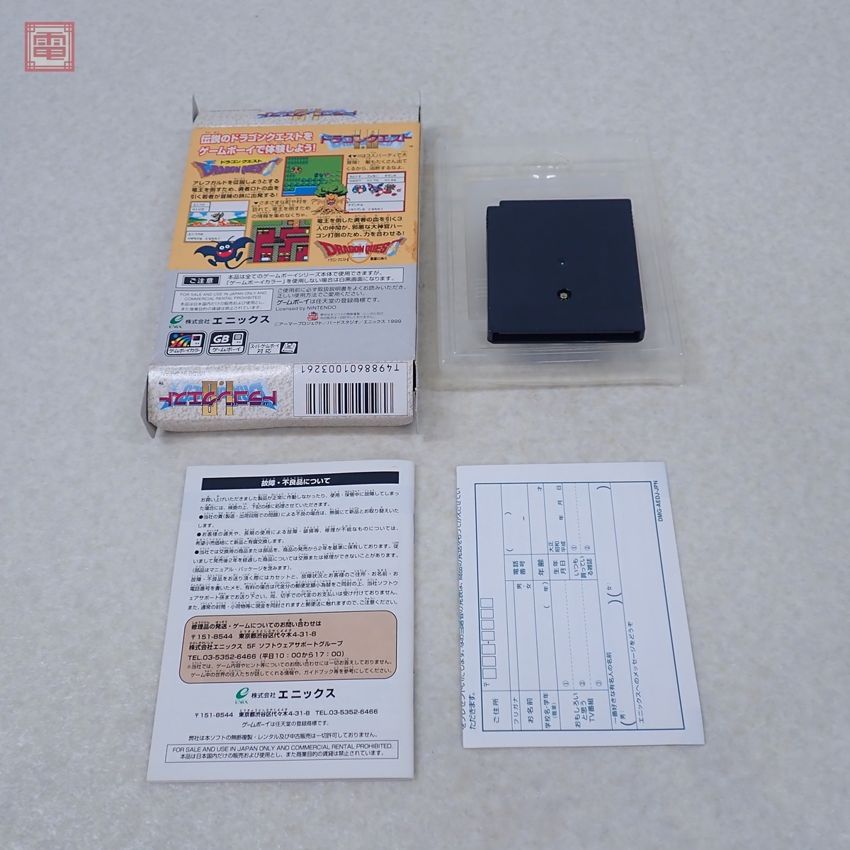 動作保証品 GBC ドラゴンクエスト I・II 箱説付 こちらの商品は動作保証品となりますので、一週間の動作保証をお付けします。 ■箱にスレ、角スレ、汚れ、キズがあります。 ■取扱説明書にスレ、角スレ、汚れ、折れ、ホチキス部のサビがあります。 ■カセットにキズがあります。 ■上記以外は未チェックです。 ■写真のものが全てです。付属物の有無や状態については写真からご判断ください。 ■チェックに使用したモニターやチェック機器等は、特に表記がない限りは付属いたしません。 ■商品到着後、当店の保証期間中は、商品及び箱や取説、付属品などを1つでも廃棄や破損をしないようにお願い致します。廃棄や破損をした場合、商品に問題があった場合でも対応や返金などの対処ができなくなります。 | |||