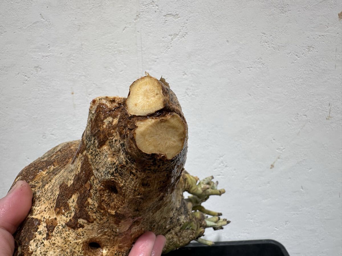 写真撮影日は10/6です。主根を切って腐りが入っていないことを確認しています。撮影後、主根断面を殺菌して乾燥させております。