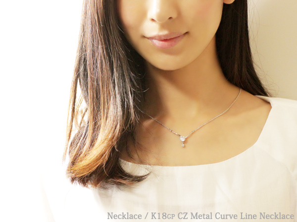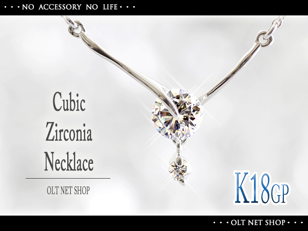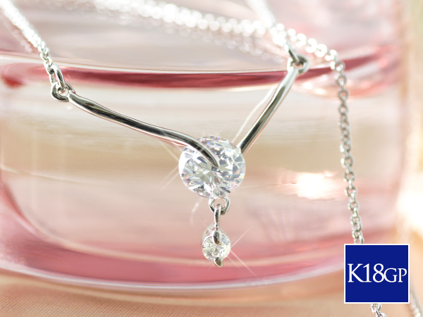 新品/ネックレス/K18GP/Y字/ダイヤ/揺れる/シルバー/18金/女性/レディース/ホワイトゴールド/チェーン/メタルラインバー/上品/CZ