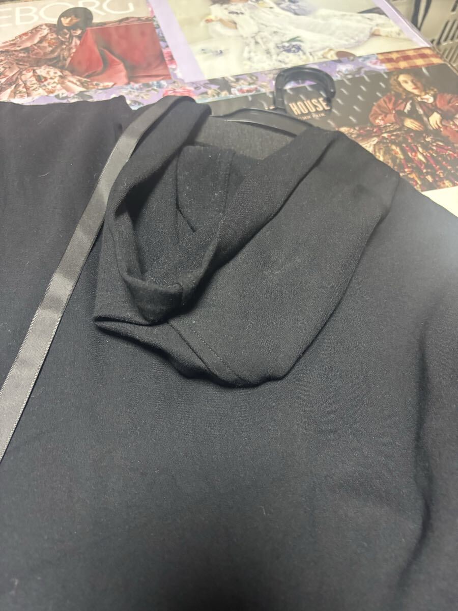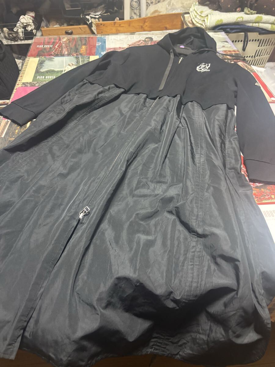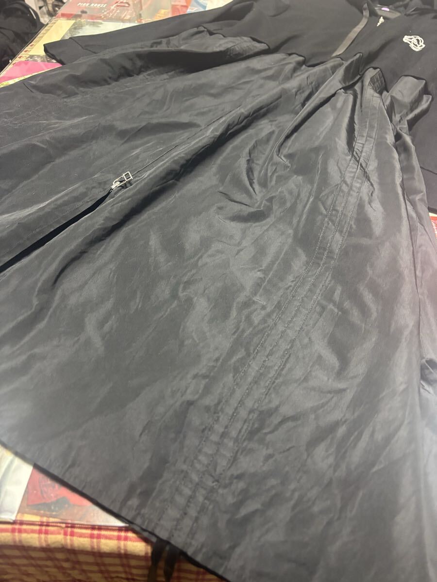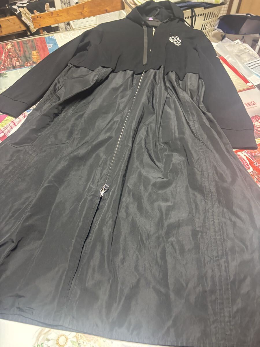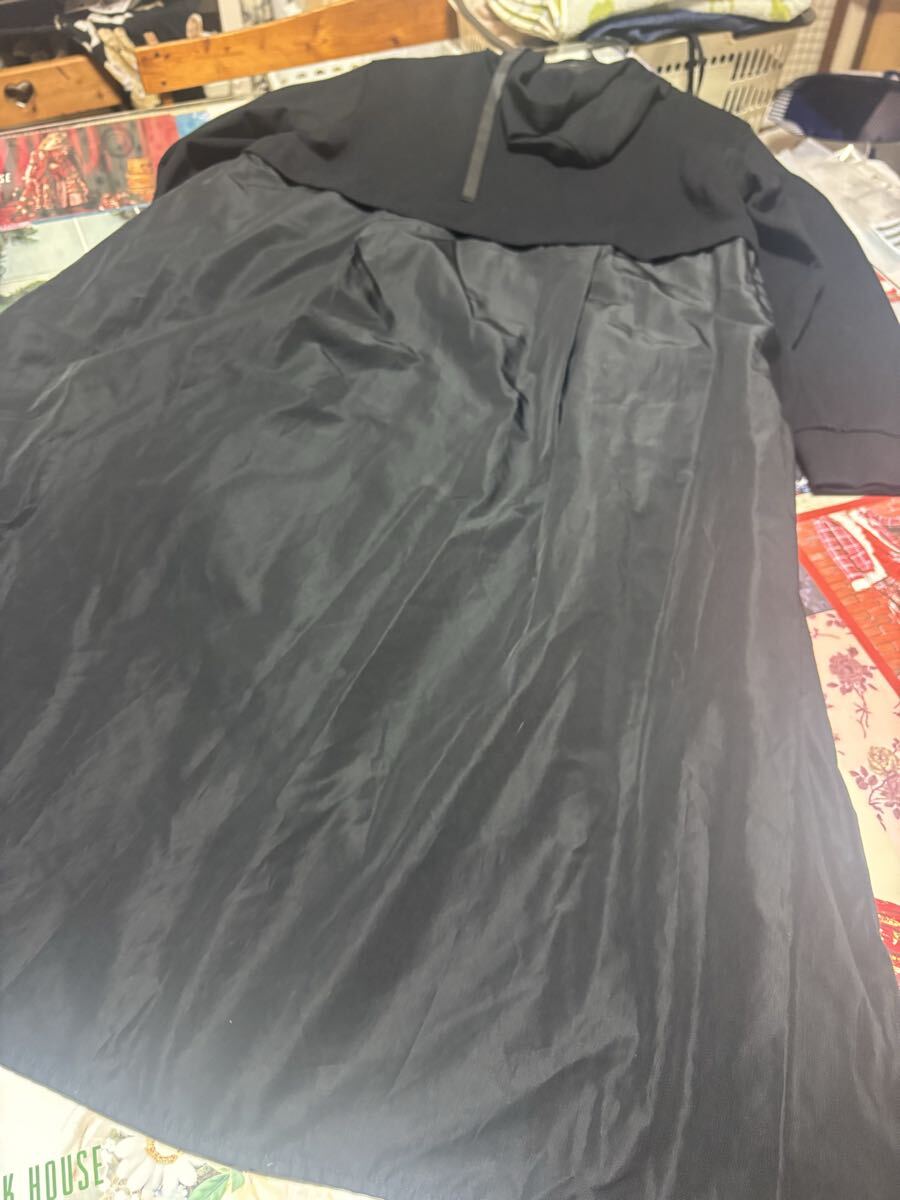 カットソーと張りのあるタフタ生地のジッパー式のワンピースコートです。