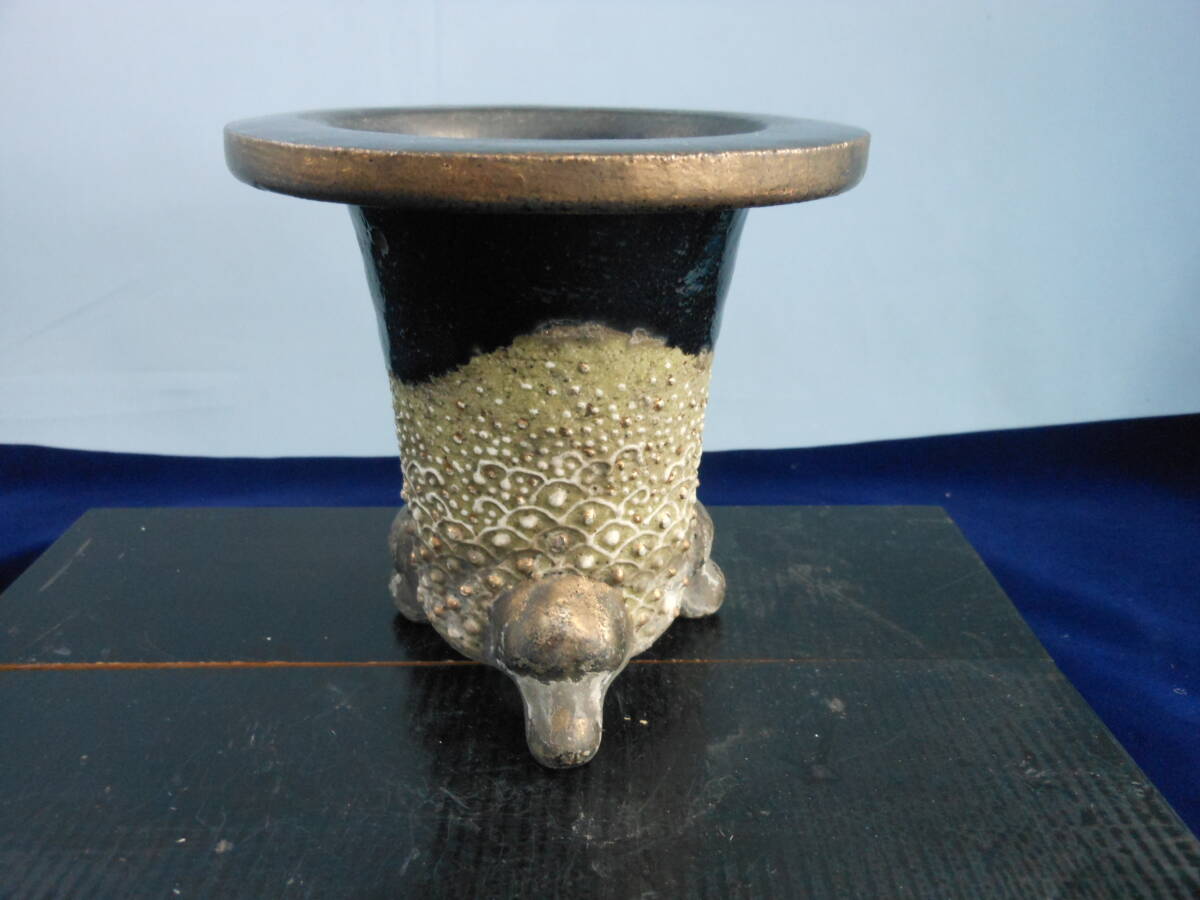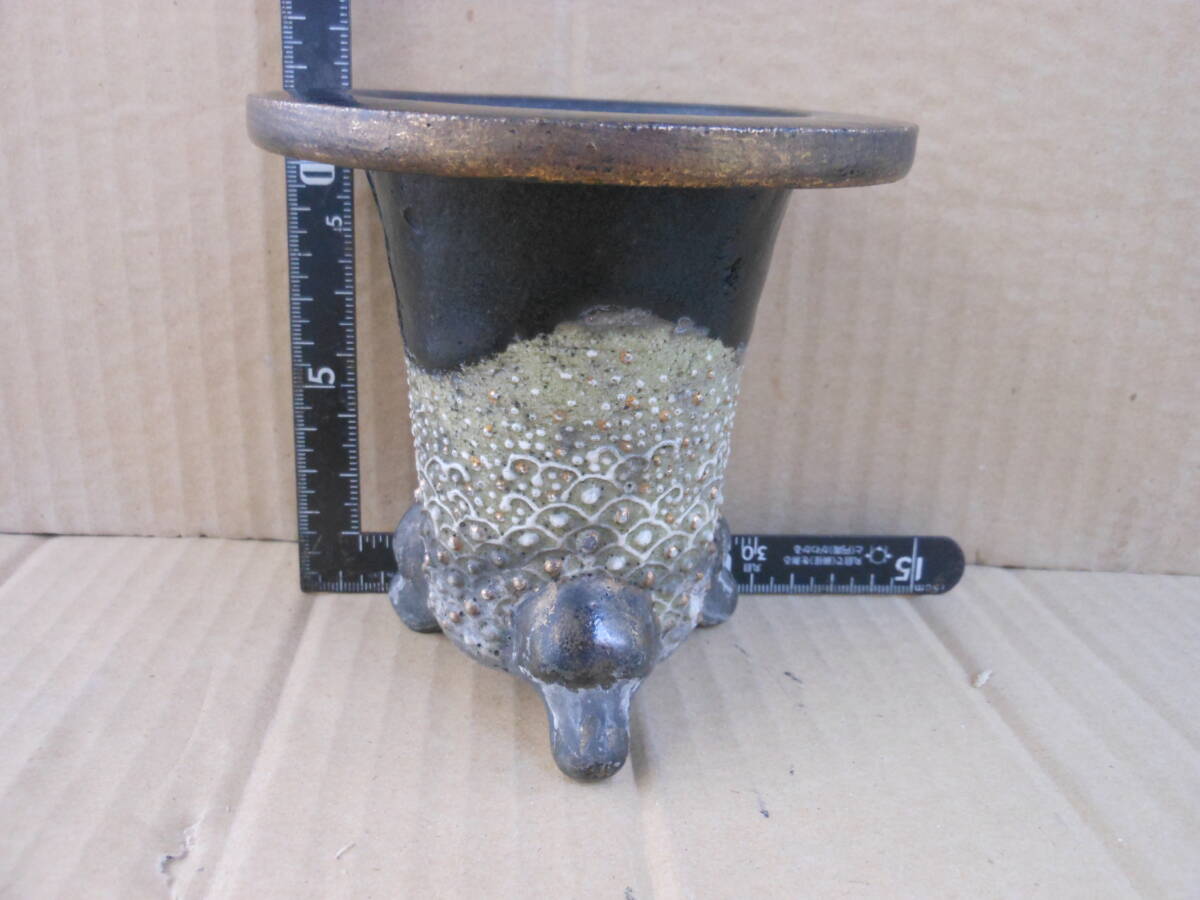 おもと鉢、こ(古)鉢です時代かなりあります。径約11,2センチ、高さ約10,7センチ(多少の誤差はお許しください)割れ、ヒビ、欠けありません。写真をよくご覧になりNC、NRでお願いします。クロネコ宅急便80サイズ(持ち込みますので定価表価格より100円引きです)にて発送致します。金額があまりにも私の思いと差がある場合はオークションの取り消しをさせて頂く場合がありますのでご了承下さい。