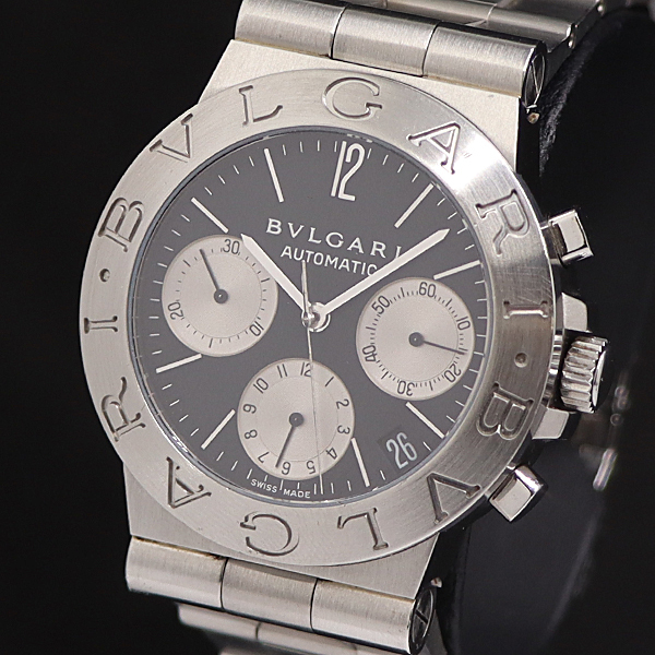 1円 稼働 ブルガリ CH35S ディアゴノ ブラック文字盤 クロノグラフ AT/自動巻 メンズ腕時計 5540700 9BGT KMR