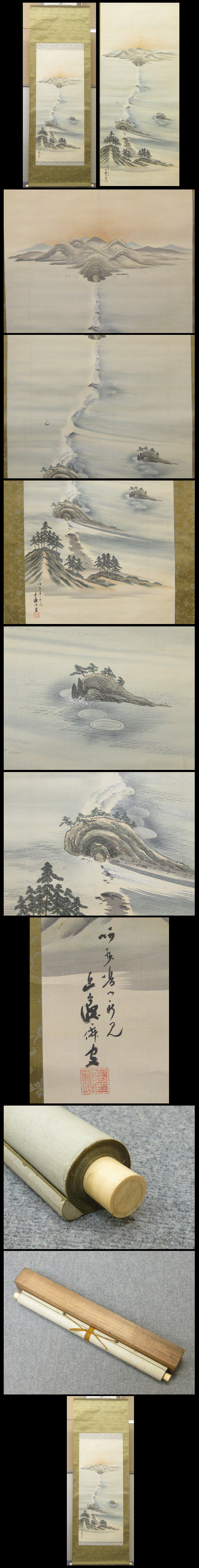 【高原雅洲 】 1882-1939 明治-昭和期徳島画家。明治十五年徳島市北佐古町生まれ。 1922年全国絵画優秀作家名鑑掲載作家。名:邦太。号:雅洲、直巌、福禄堂寿山人など。 幼少の頃より画を好み、深井豊洲に師事して四条派を修め、また狩野永朝に狩野派を学んだ。 のち、二十年あまり京阪各地を遊歴して研鑽した。のちに橋本雅邦に師事し一家を成した。 鳴門海峡の風景図が比較的多く残っている。 ★商品サイズ★ ■掛軸 196×65.5cm ■作品 119×51cm ★商品の状態★ 作品・表具共に少しのしみ汚れがあります。 ご承知のうえご入札をお願いします。 時代など詳しくは画像にてよく確認のうえでご検討いただければと思います。 どうぞよろしくお願いいたします。 |