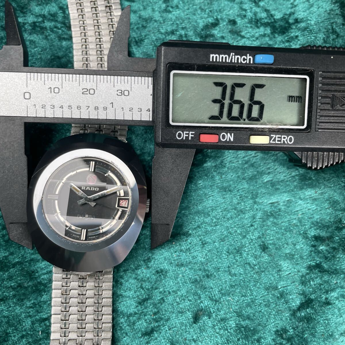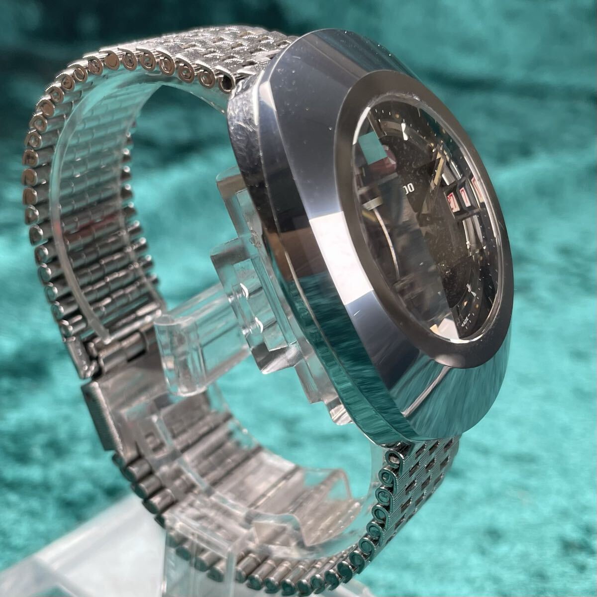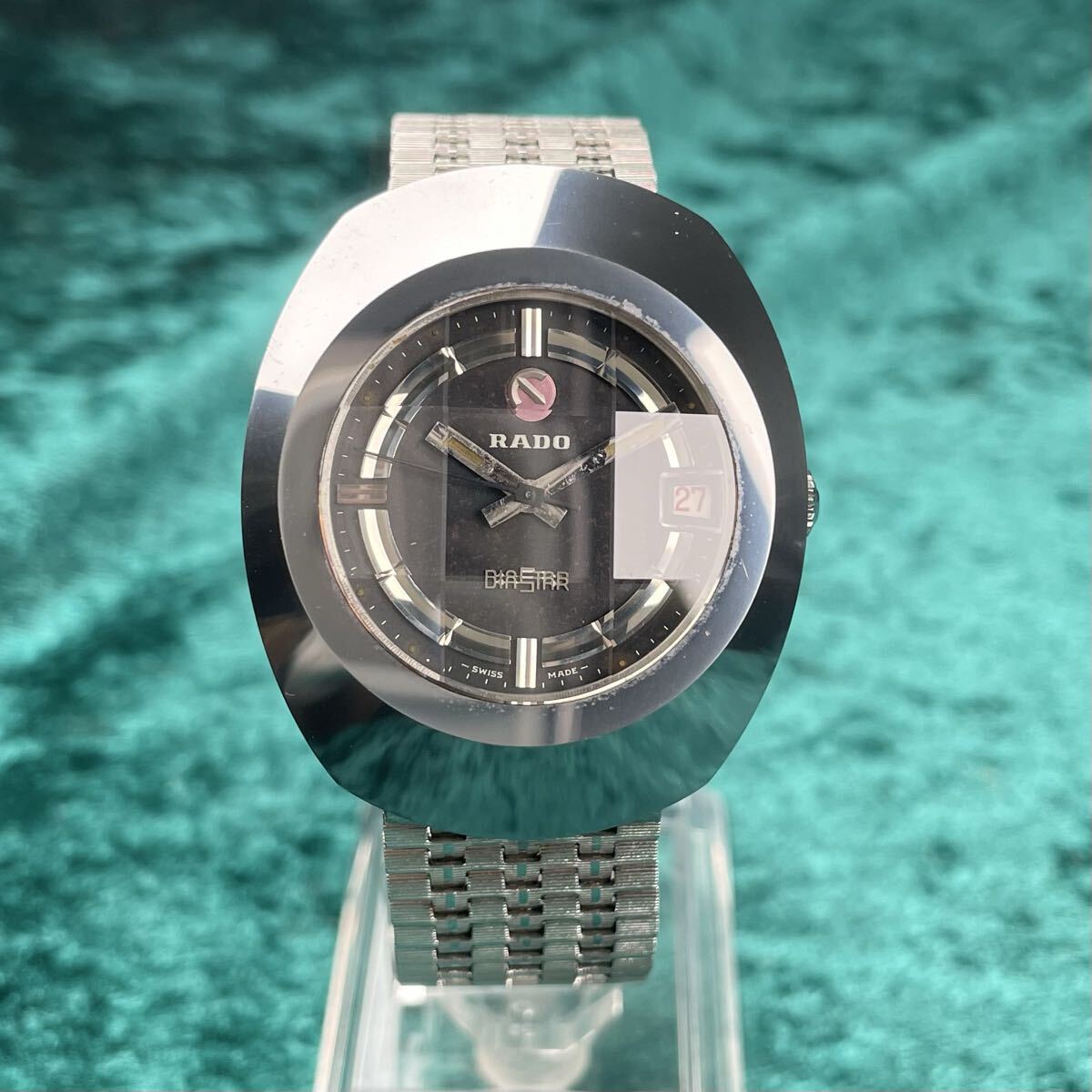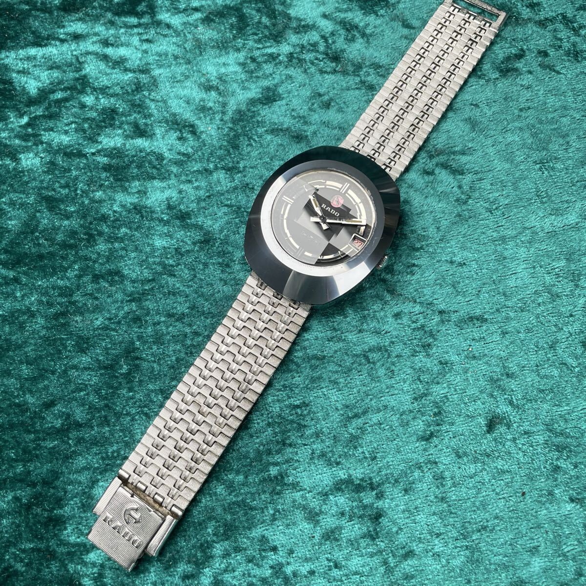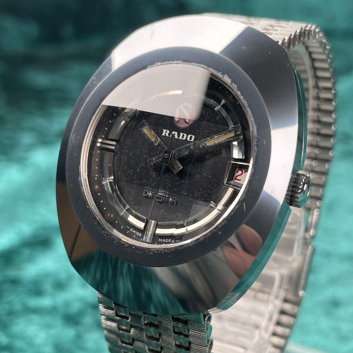 ビンテージ RADO DIASTAR ラドー ダイヤスター 希少 超硬ケース ブラックダイヤル カットガラスキズ無し オリジナルブレス 機械式自動巻き