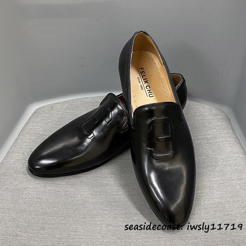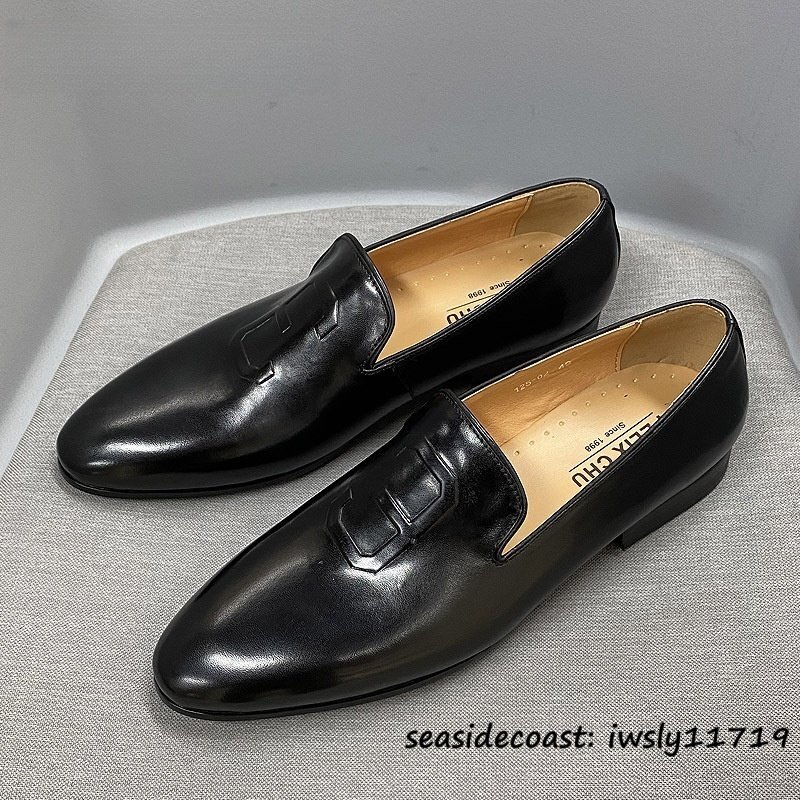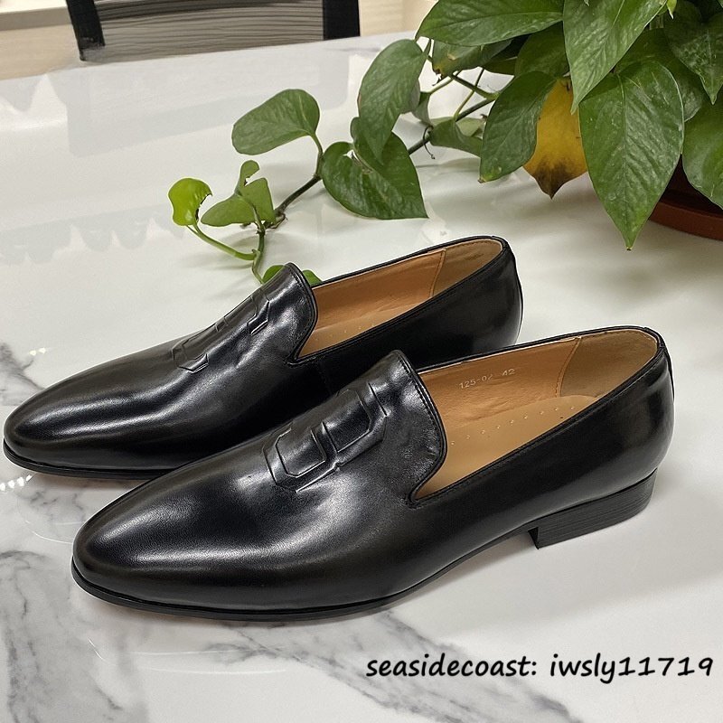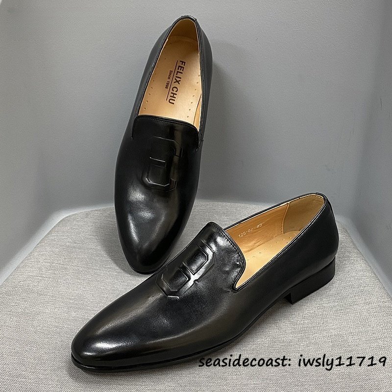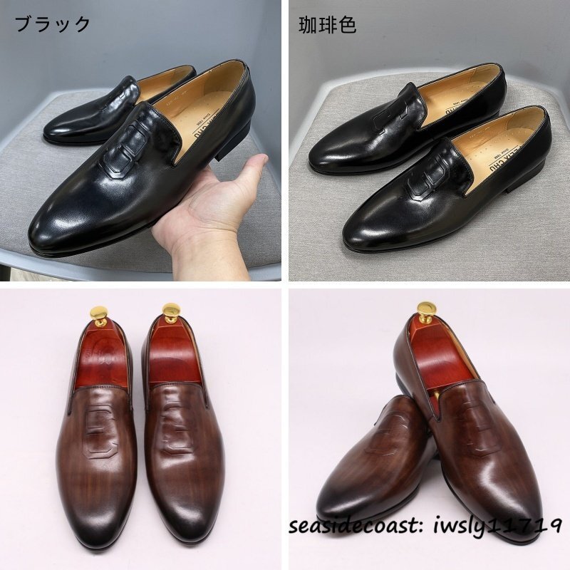 最高級★定価9万 レザーシューズ 新品 ビジネスシューズ 本革 メンズ 職人手塗仕上げ 超希少 ローファー 紳士靴 牛革 革靴 ブラック 24.5cm