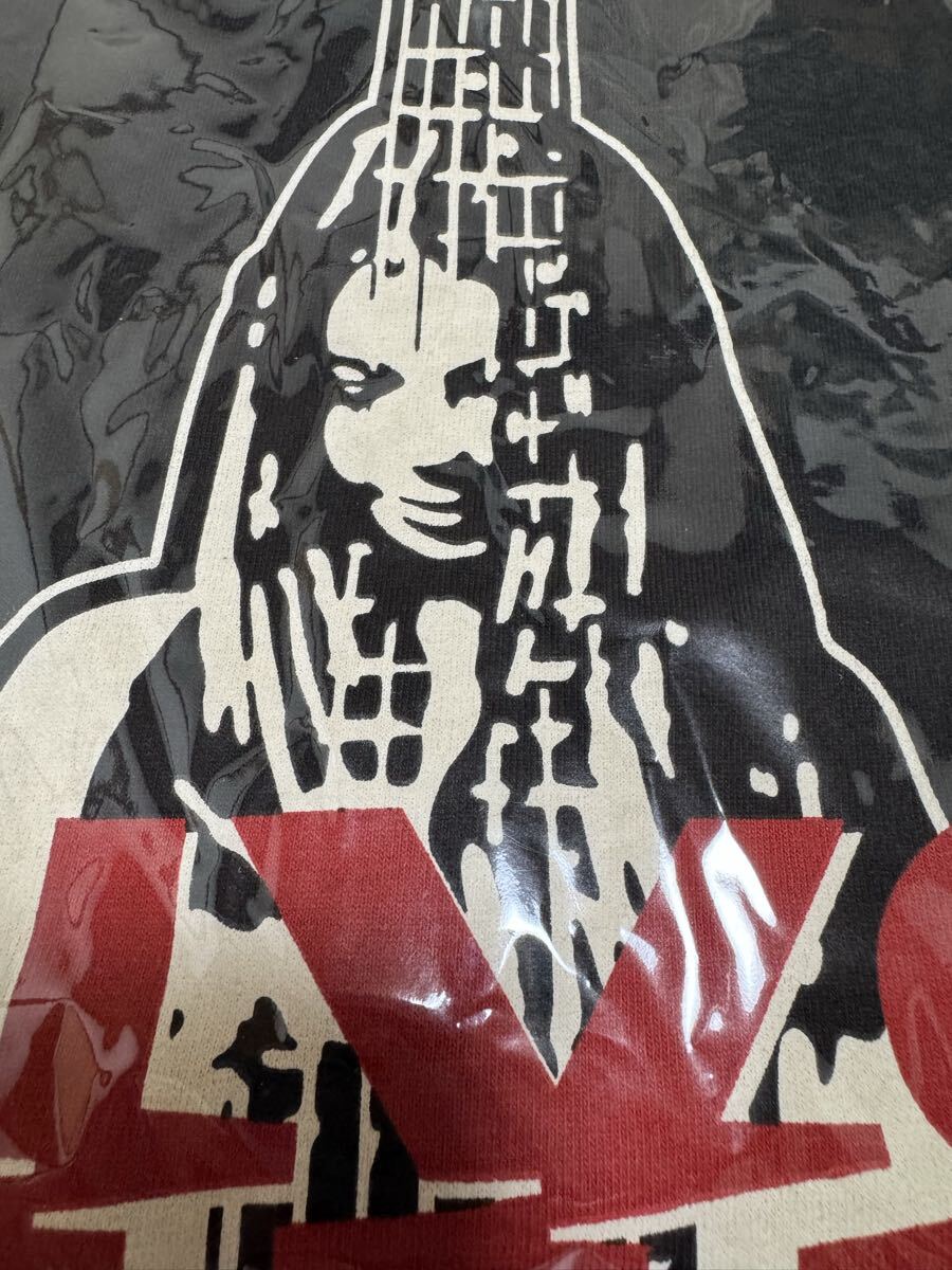 画像でも分かるように、HYSTERIC GLAMOURのアイコニックなギターガールとメタルバンドをオマージュしたロゴを組み合わせたグラフィック!