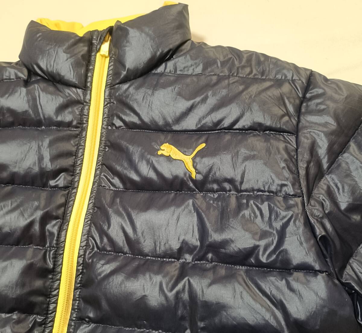 PUMA プーマ ダウン90% フェザー ダウンジャケット 140cm 男の子 防寒 紺黄 中綿 8082