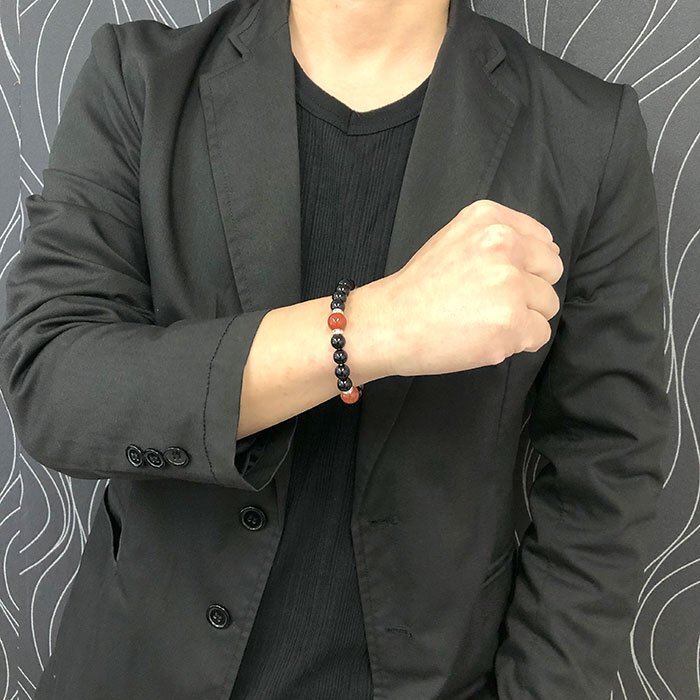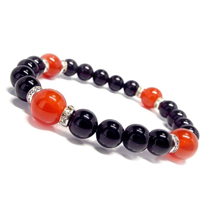 【STONE KITCHEN天然石 パワーストーン】 ¥オニキスとカーネリアンの組み合わせによって気の流れを良くし、 新陳代謝を活発にし、集中力や、疲労回復にも効果を発揮してくれます。 サイズ:カーネリアン 10mm オニキス 8mm 内周:約17cm 1点 注意事項 ※金属部分は汗や汚れ等で変色する場合がございます。気になる場合は金属磨きや布等で軽くふき取る事をおすすめします。 ※石の種類によっては、艶を引き出すことを目的として、ワックスや着色加工がされているものもあります。 ※表示のサイズは必ずしも最大値・最小値のサイズのものが入っているわけではございません。 ※天然石のため同じものでも色味・模様などが異なります。 ※照明の具合で実際とは色合いが異なる場合がございます。 また、天然素材特有のクラック・内包物を有する場合がございます。予めご了承下さい。 | |||