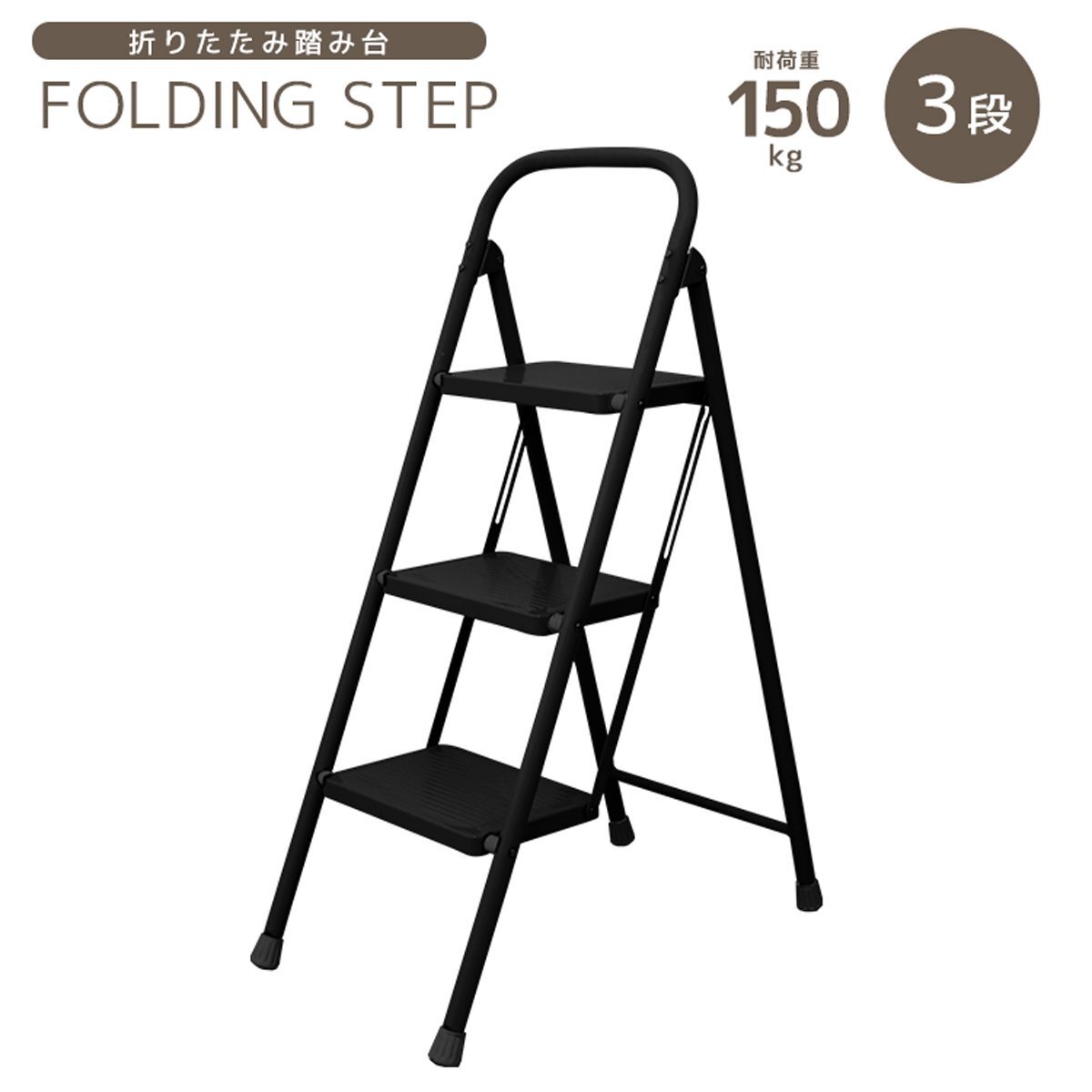 ステップ台 3段脚立 (折りたたみステップ 滑り止め加工) 耐荷重(約):150kg 段数:3段タイプ カラー:ブラック 暮らしに馴染むやさしいカラーの折りたたみステップです。 一家に一台あると便利! 照明器具の交換や、高い位置になる棚から物を取り出すときに便利!! 耐荷重(約)150kg&ワイドステップ!安定感抜群で安心♪ また、滑り止め加工・握りやすい持ち手・脚先グリップで最上段まで簡単に上れます! お部屋や玄関に置いても邪魔にならないスリムサイズ。 折りたためばコンパクトに!手軽に持ち運びできちゃいます☆ |