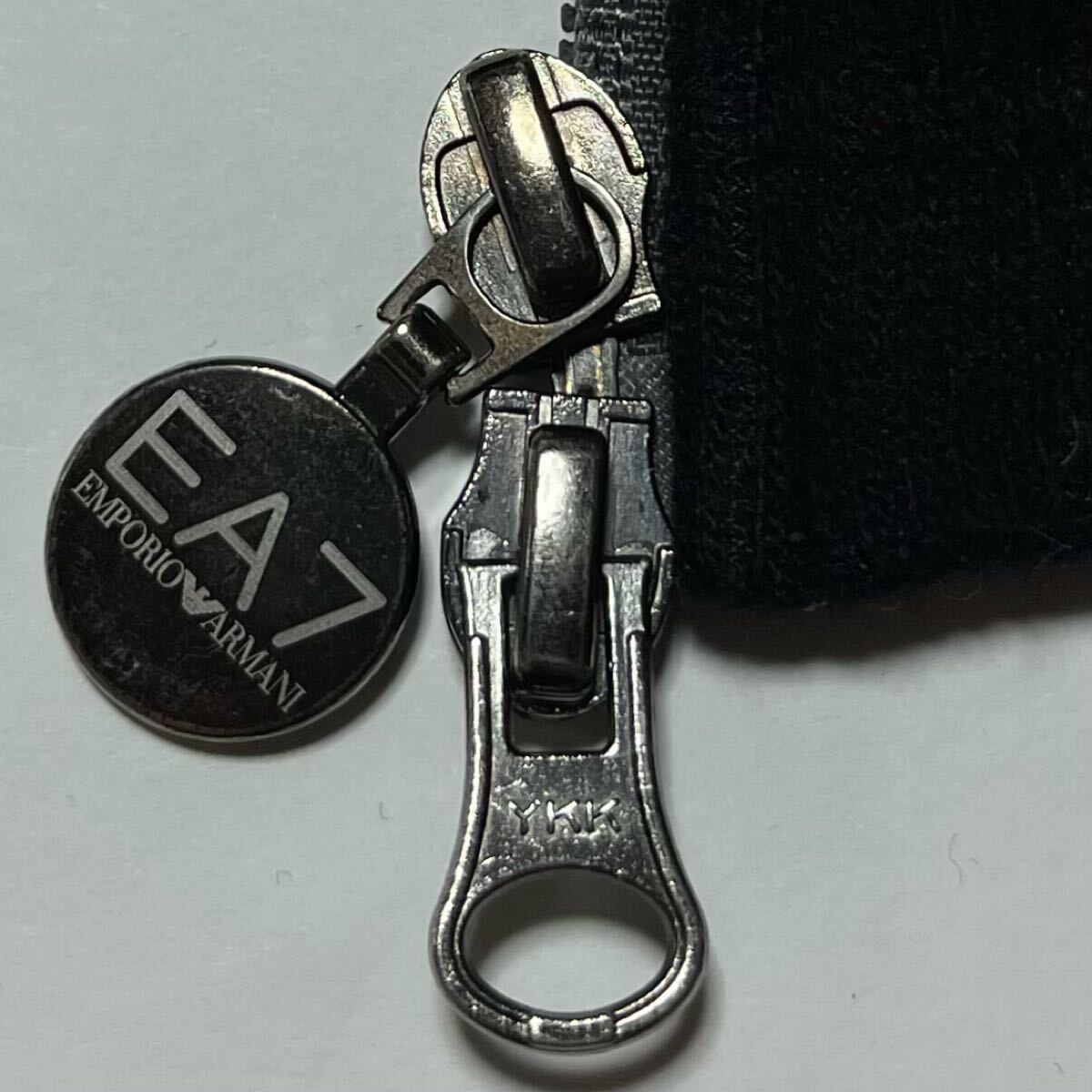 フロントはダブルジップ仕様で、ジップヘッドには「EA7 EMPORIO ARMANI」のロゴが刻まれ、存在感をさりげなくアピール。