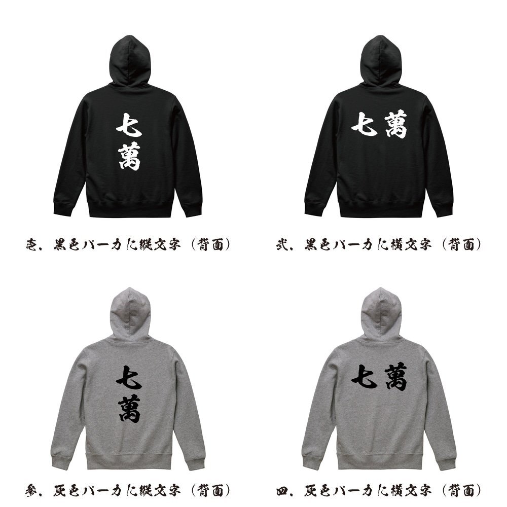 七萬 (チーマン) 書道家が書く デザイン フルジップ パーカ 【 麻雀 】 メンズ レディース キッズ