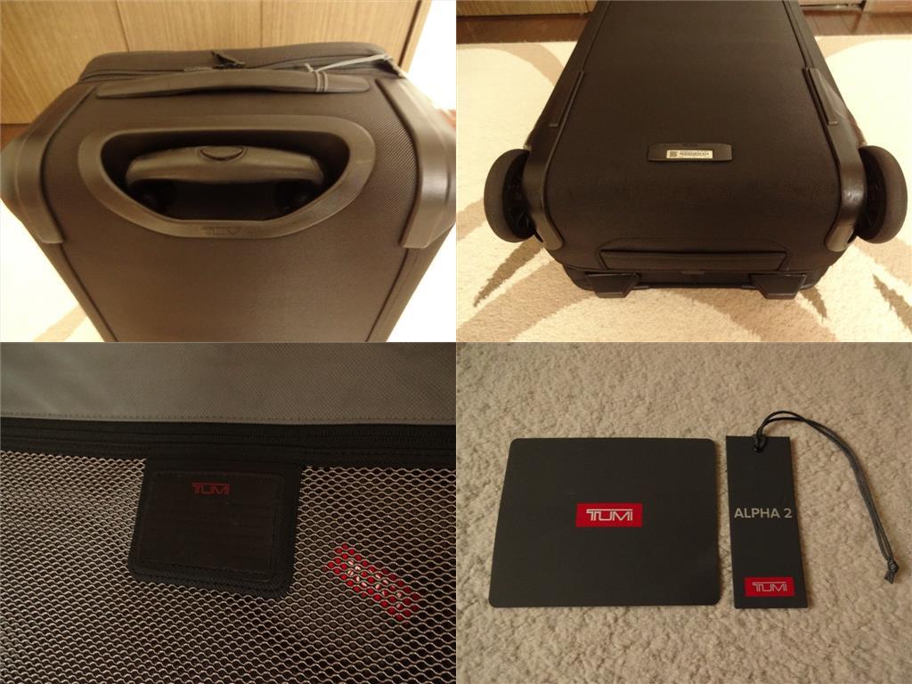 TUMI(トゥミ) ALPHA2 キャリーケース (インターナショナル・エクスパンダブル・2ウィール・キャリーオン) 【型番】22020D2 【サイズ】H56cm×W35.5cm×D23cm (拡張でD28cm) 【重量】約4kg 【容量】約33L 【カラー】ブラック 【素材】FXTバリスティックナイロン※防弾チョッキに使われる強靱な素材です。 【装備】外部/フロントに大型ファスナーポケット×1、ファスナーポケット×1(内部にオープンポケット×2)、 マチ幅拡張用ファスナー、バンパーガード、キャリーハンドル、 上部・サイド・底部にハンドル、静音ホイール(インラインスケート仕様)、 アド・ア・バッグ・フック 内部/ファスナー式ガーメントセクション、 ハンガーフック、ファスナー付きメッシュポケット、 タイダウンストラップ(取り外し可)、サイドファスナーポケット×2 【付属品】革製アドレスタグ、タイダウンストラップ、製品タグ 【特徴】機内持ち込み可能(100席以上)サイズとなります ※航空会社により不可の場合がございます。 旧モデルから軽量化されたALPHA2シリーズです。 ホイールが大型化され、走行性・静音性が大幅にアップしています。 ファスナーによりマチ幅を約5cm拡張可能です。 【状態】ホイール周りを中心に若干の擦れキズございますが使用歴は少ないので 目立つ様なダメージはなく全体的に綺麗な状態です。 キャリーハンドル、ホイール、各ファスナーの可動良好です。 【追記】画像で縞模様に見えるのはデジタルカメラによる「モアレ現象」で実際にはありません。 |