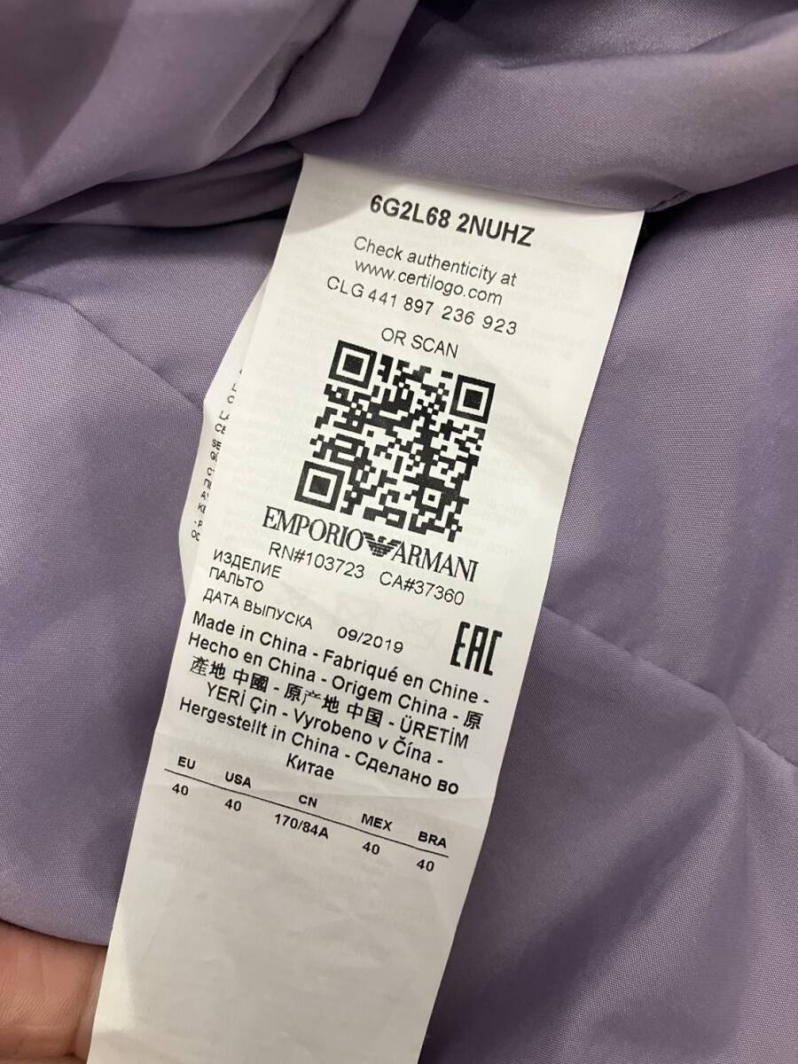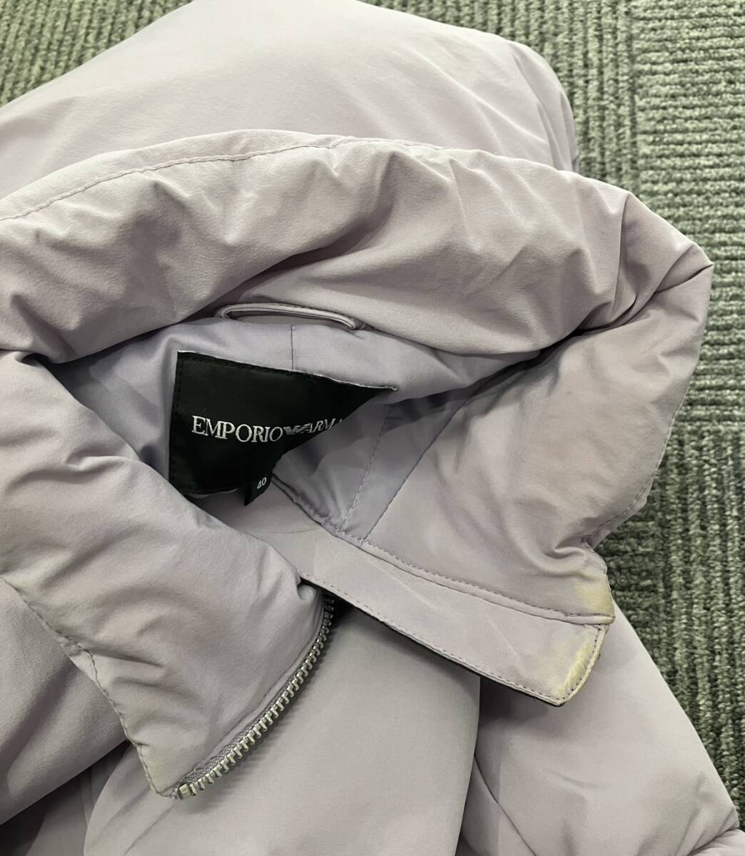 #2141 EMPORIO ARMANI エンポリオアルマーニ ダウンジャケット レディース ラベンダー パープル 40サイズ ロングコート 現状品