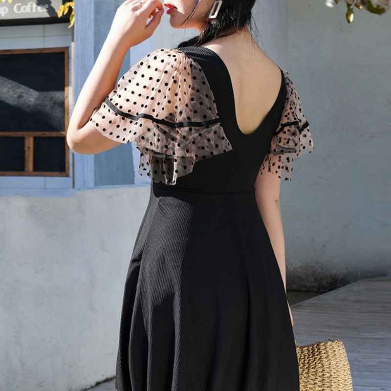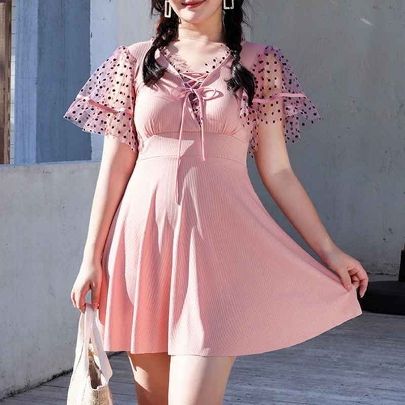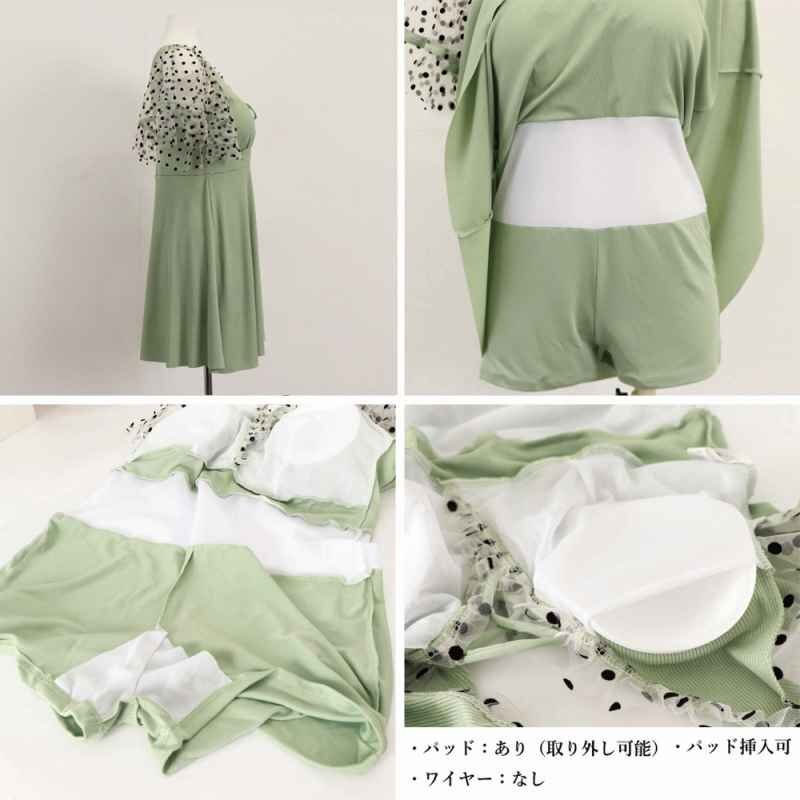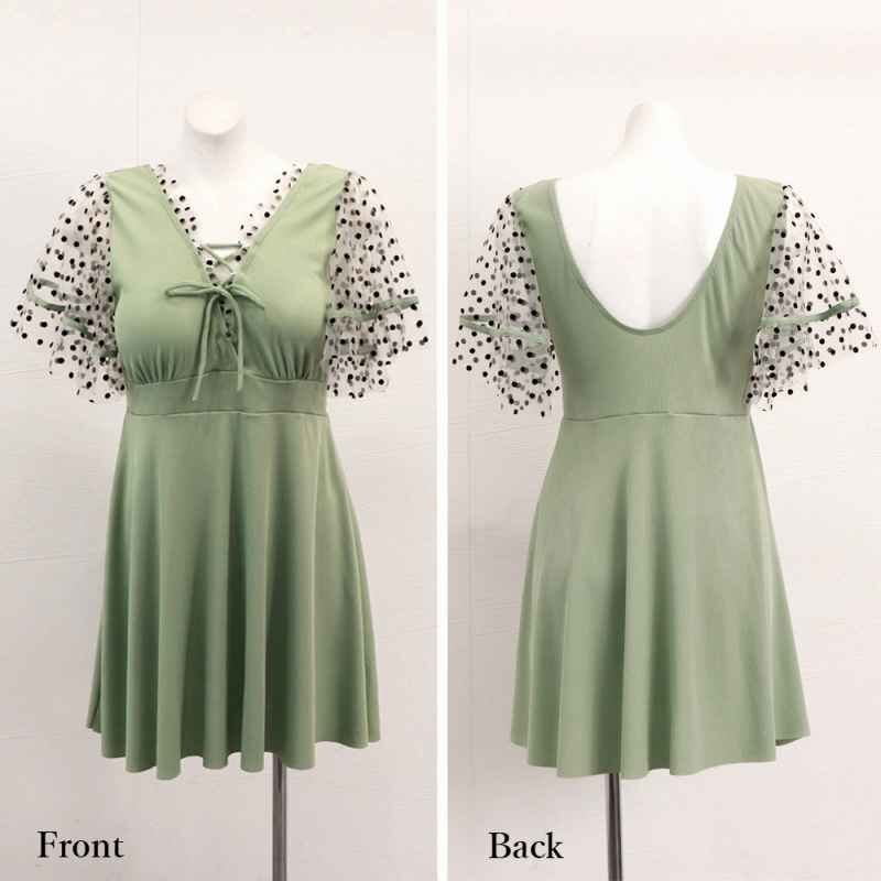 セクシーな印象を与えてくれるレースアップデザインのチュール袖ワンピース水着です。