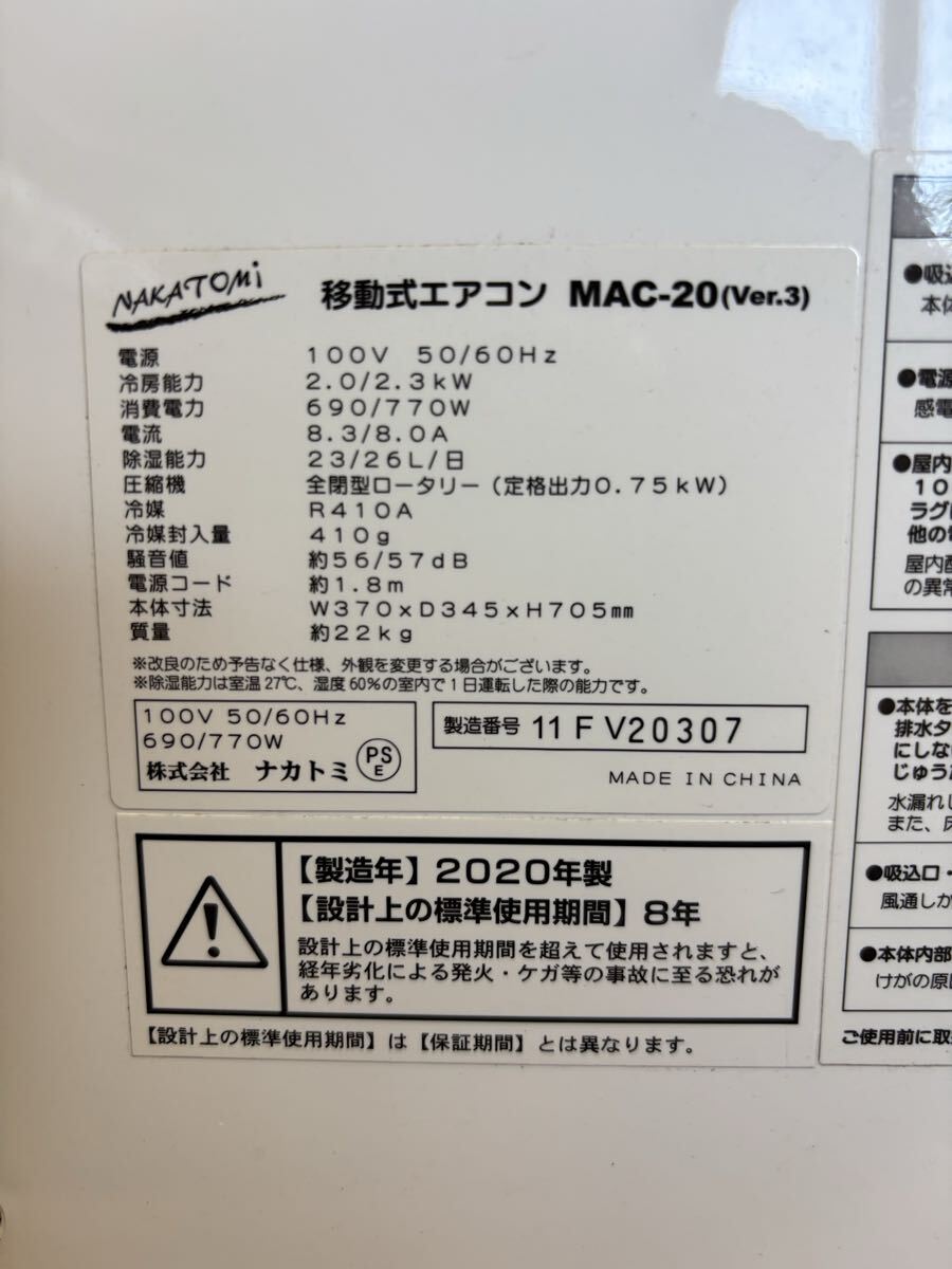 ●当商品はナカトミ移動式エアコンのMAC-20の中古品です。