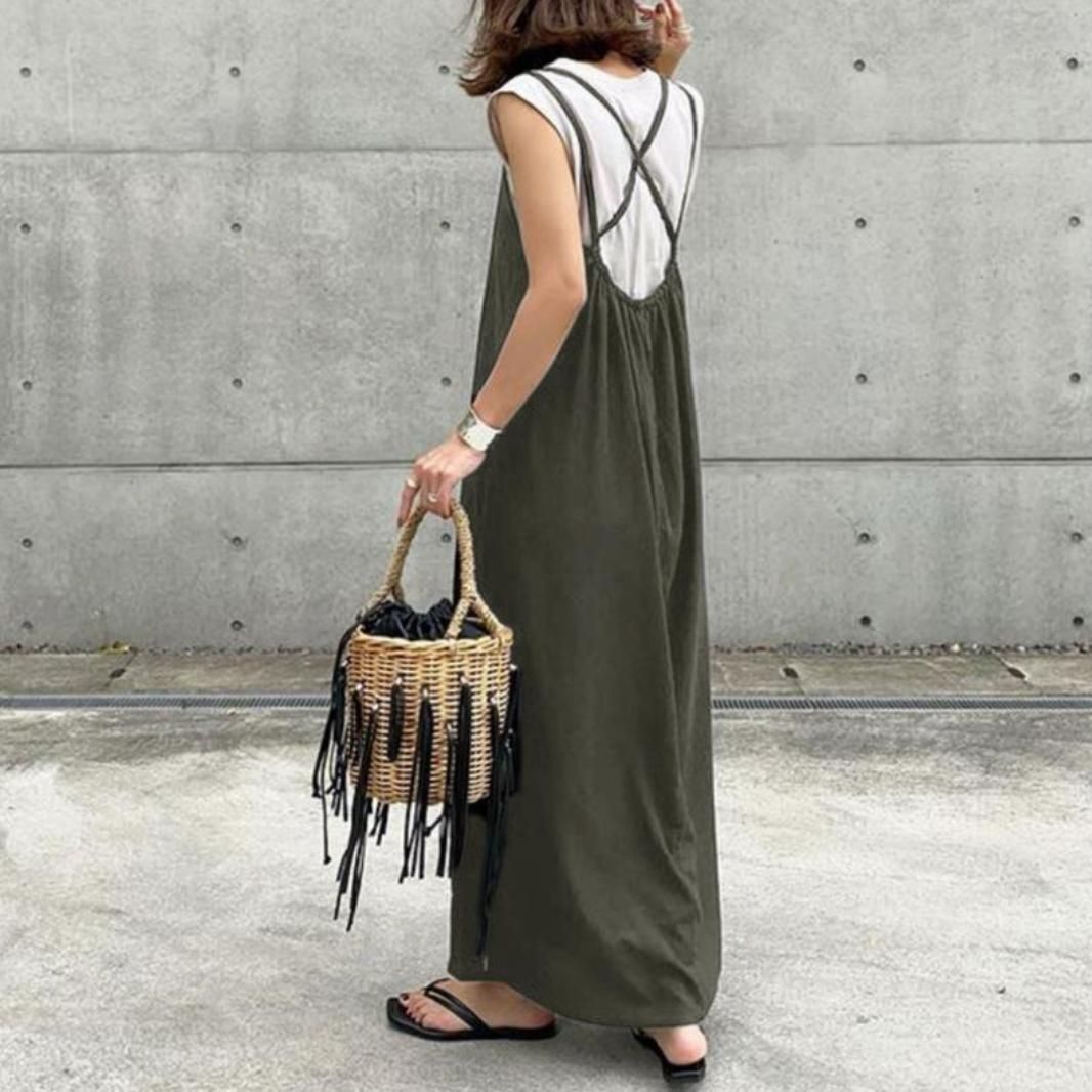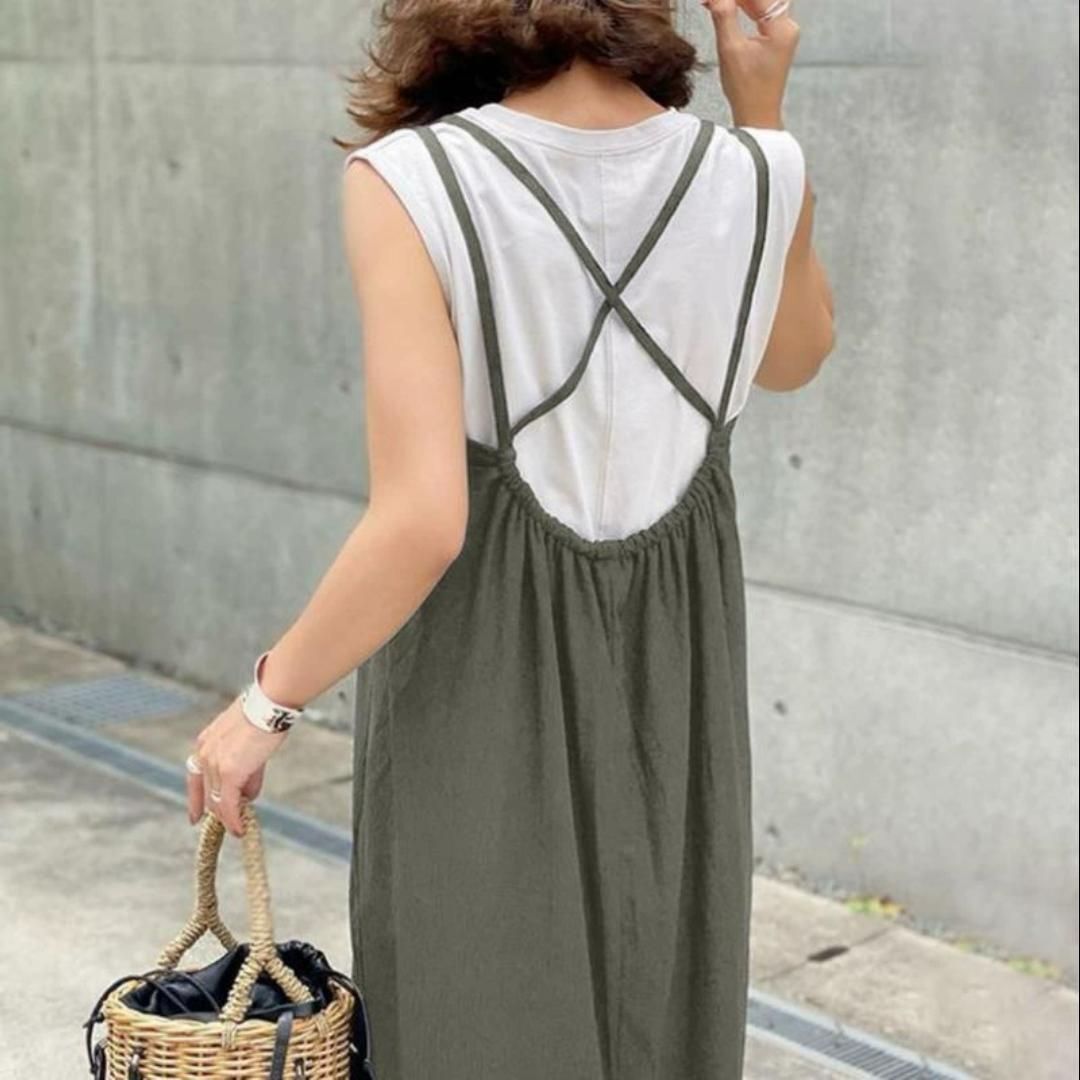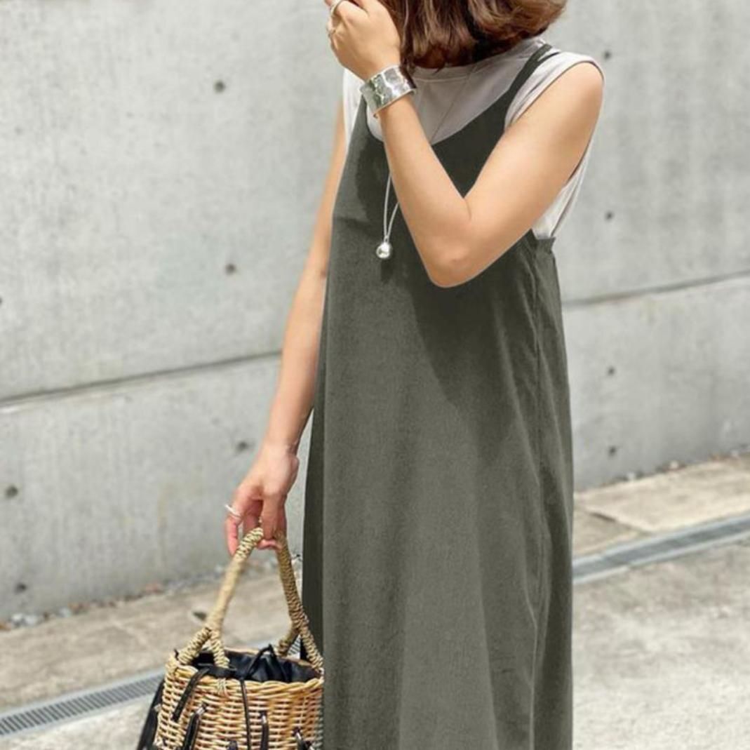 ワンピース キャミワンピース キャミソール ノースリーブ ロングワンピース マキシワンピース ストレッチ ロング オールインワン ゆったり 体型カバー ラウンドネック シンプル カジュアル 無地 レディース 夏 妊婦 マタニティ 938