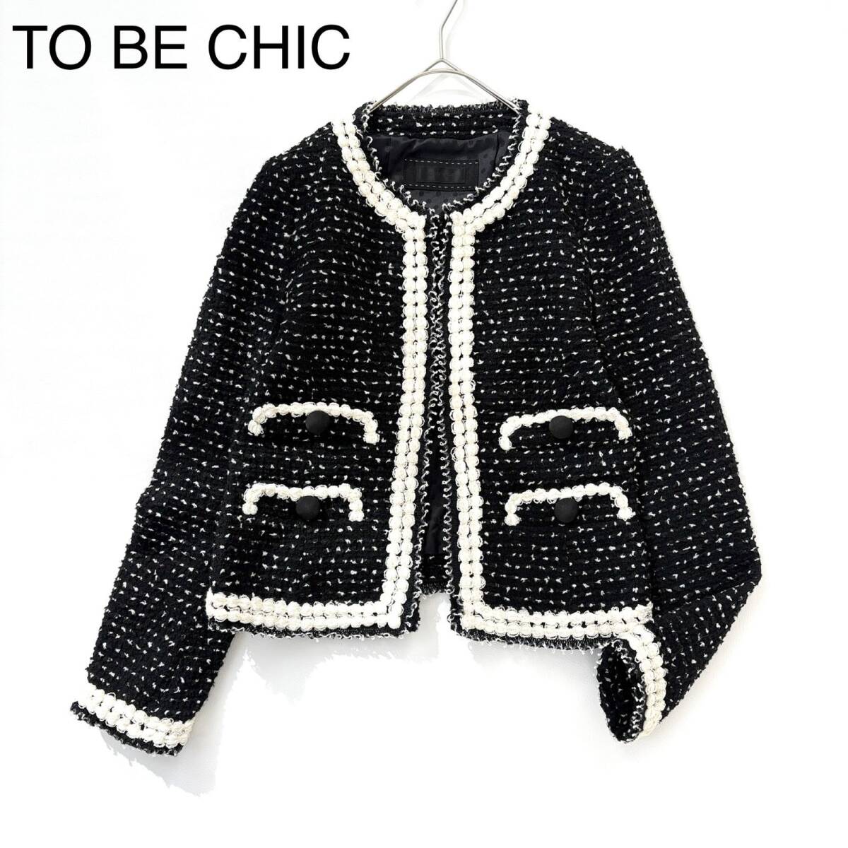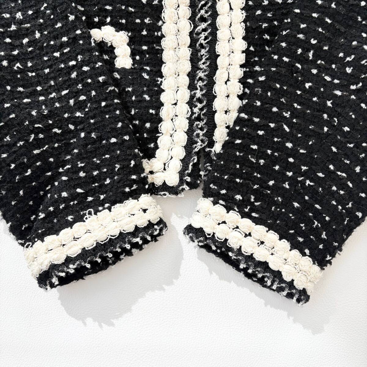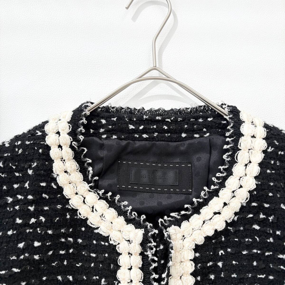 ノーカラーツイードジャケット ドット柄 フォーマル スーツ 40 L エル ノーカラージャケット