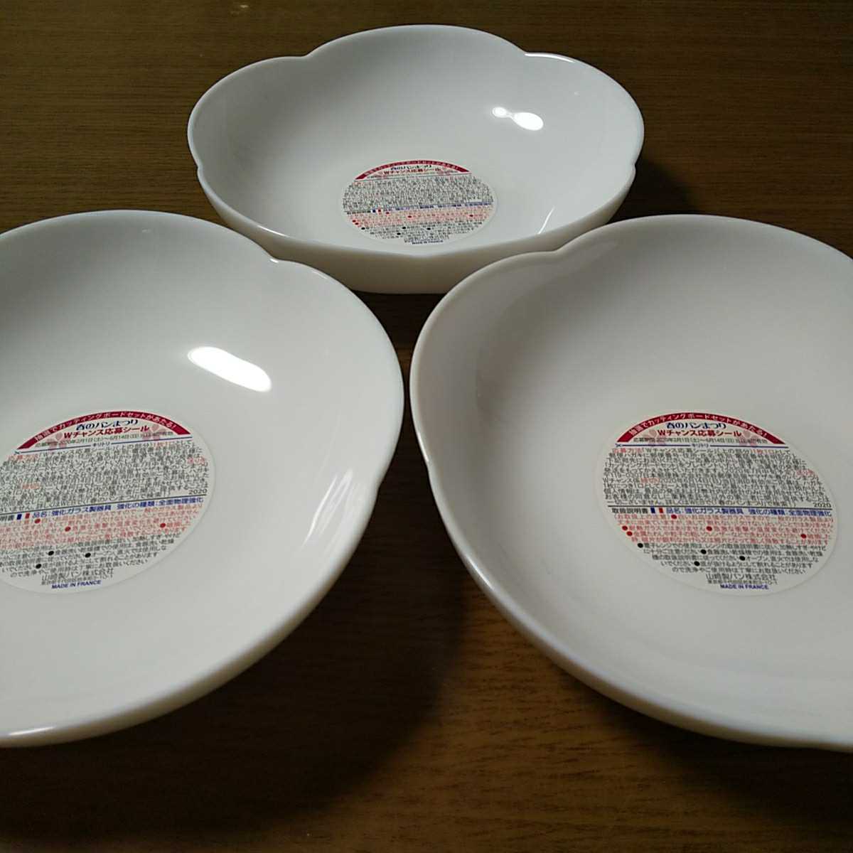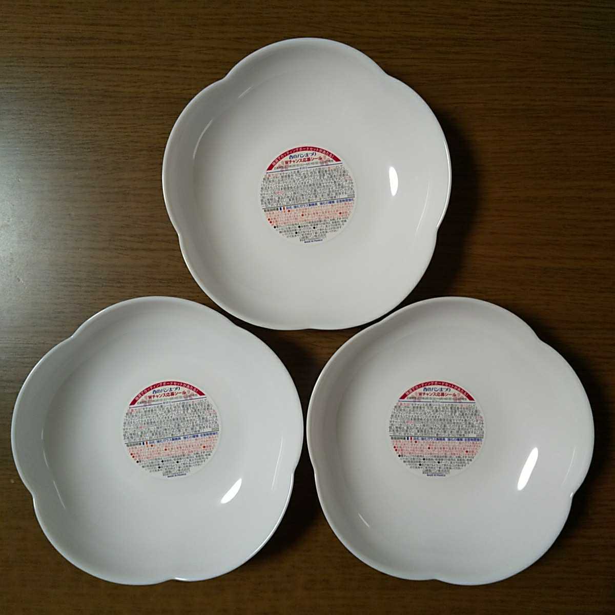 ヤマザキ春のパンまつり2020白いフラワーボウル3枚セットです。直径約17cm高さ約4cmです。