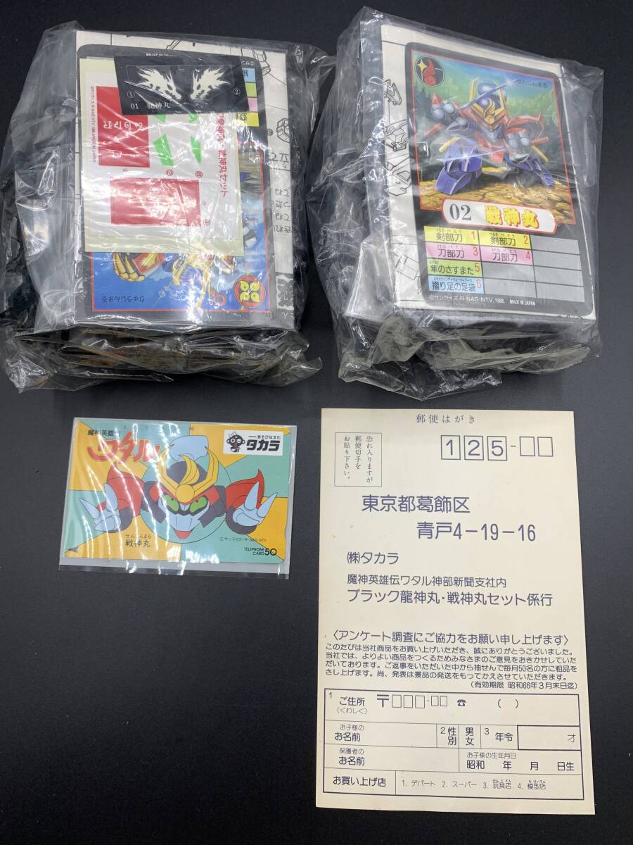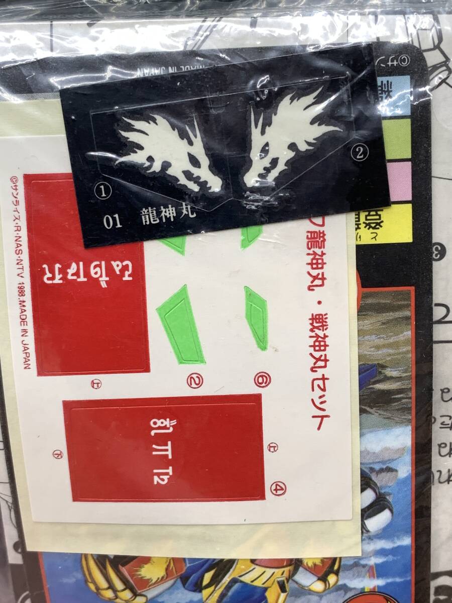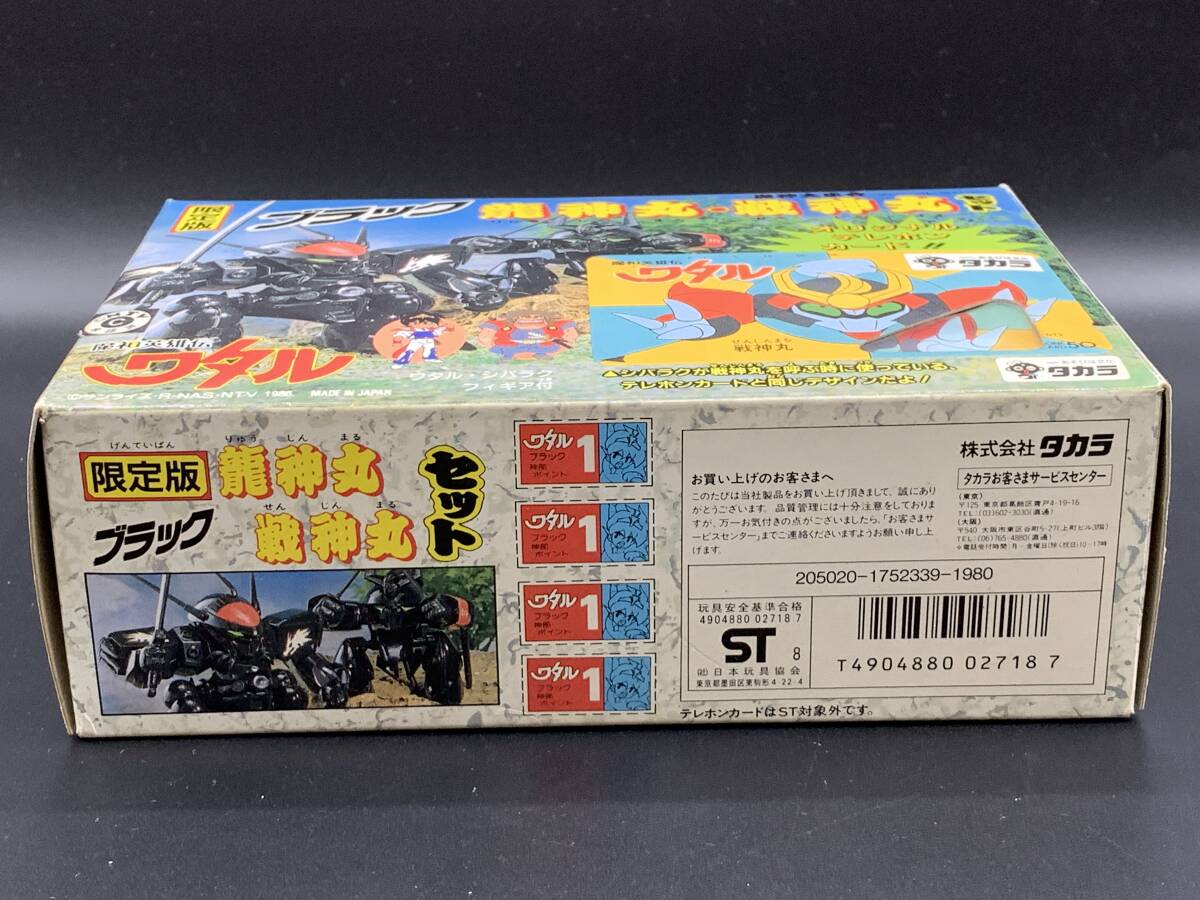 箱の側面から開封しましたが未組み立て、内袋は経年で封のテープが剥がれていますが未使用、未組み立て、欠品なしです。それぞれブラック版であるだけでなく龍神丸の肩の蓄光シールの背景が黒で特別仕様です。シールも2体分ひとまとめになっている特別仕様です。テレホンカードも未使用、箱の内側からテープで留められていましたが経年で剥がれていますので厳重に箱の中に入れて発送致します。