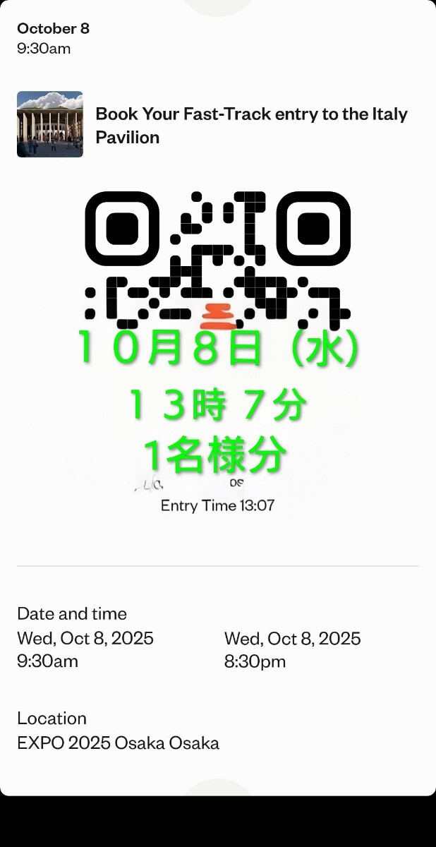 当日は予約レーンのスタッフに画像(QR)をお見せ下さい。