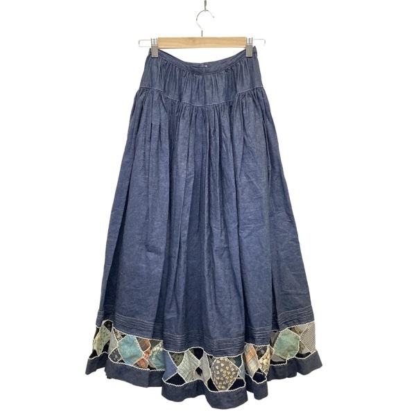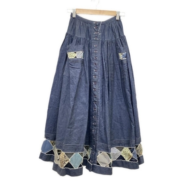 ピンクハウス PINK HOUSE ロングスカート - ネイビー×マルチ レディース デニム/チェック柄/花柄 ボトムス