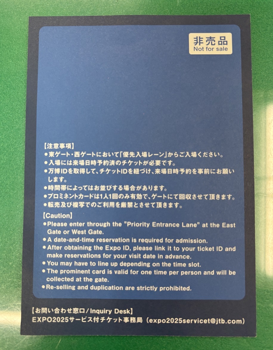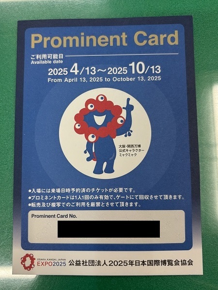 大阪・関西万博の優先入場券(プロミネントカード)です。