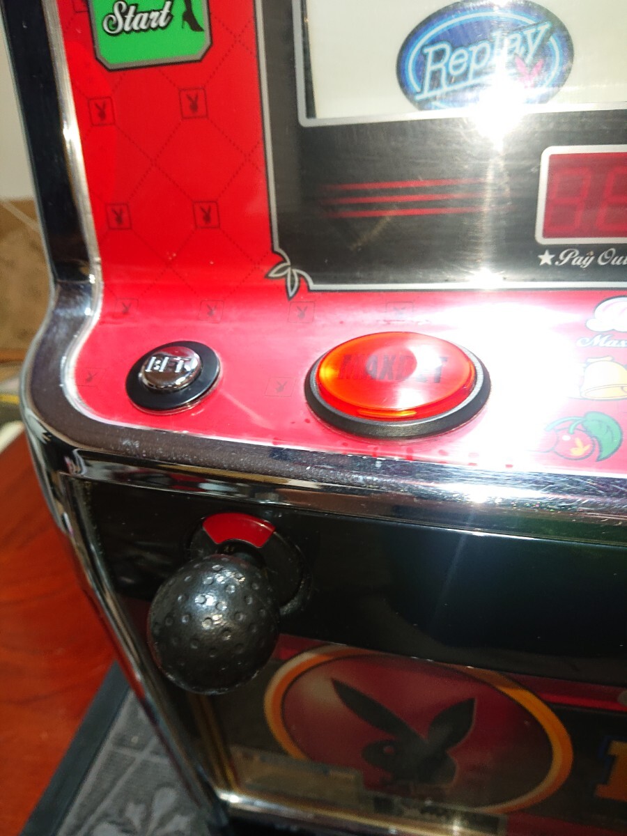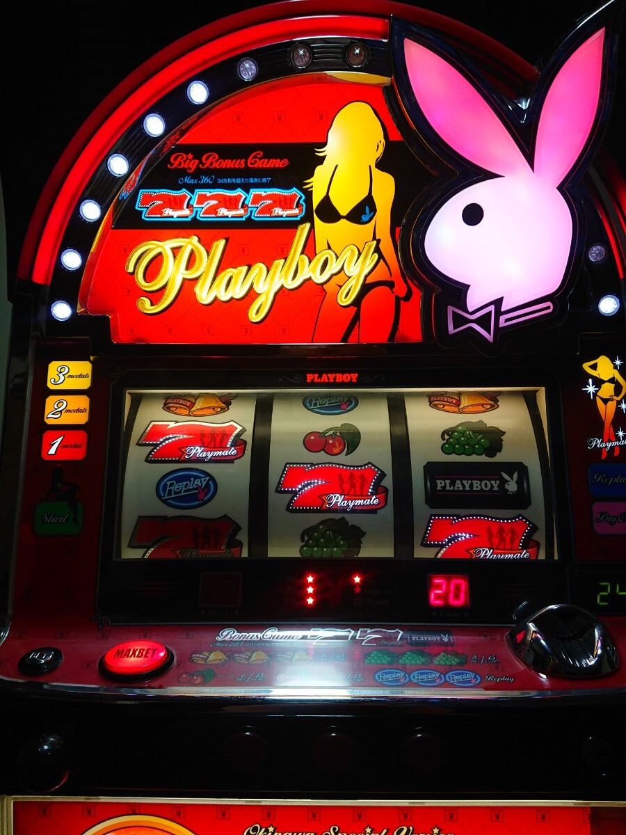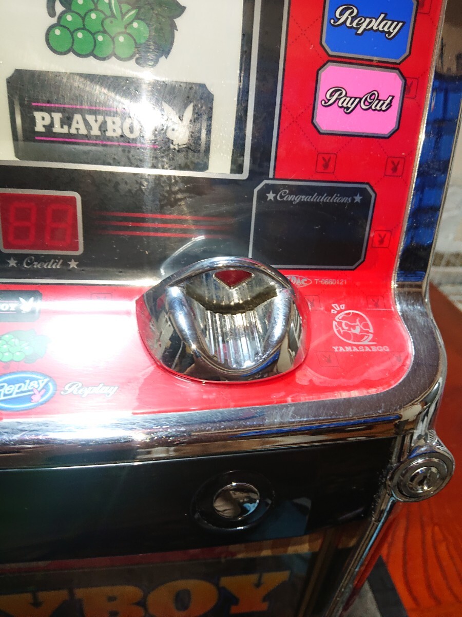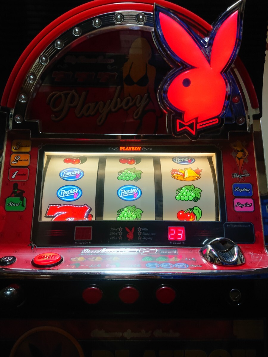 パチスロ実機、プレイボーイ30です。動作確認済みで、リールの回転、ボリューム調整、設定の変更等、問題なく動作致しました。家庭用100V電源対応のコイン不要機付きです。無段階ボリュームは付いています。現状、パネルランプ、リールランプ、キャパシタも問題ありませんでした。台鍵、設定キーは付属致します。配送は福山通運でお送り致します。自宅は福岡県の三潴郡です。御都合宜しければ、自宅お引き取りでも大丈夫です。