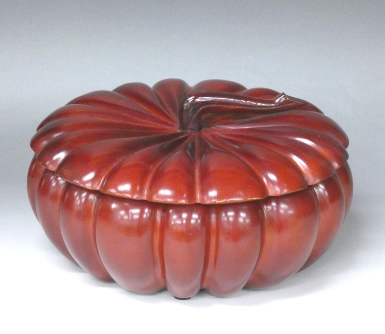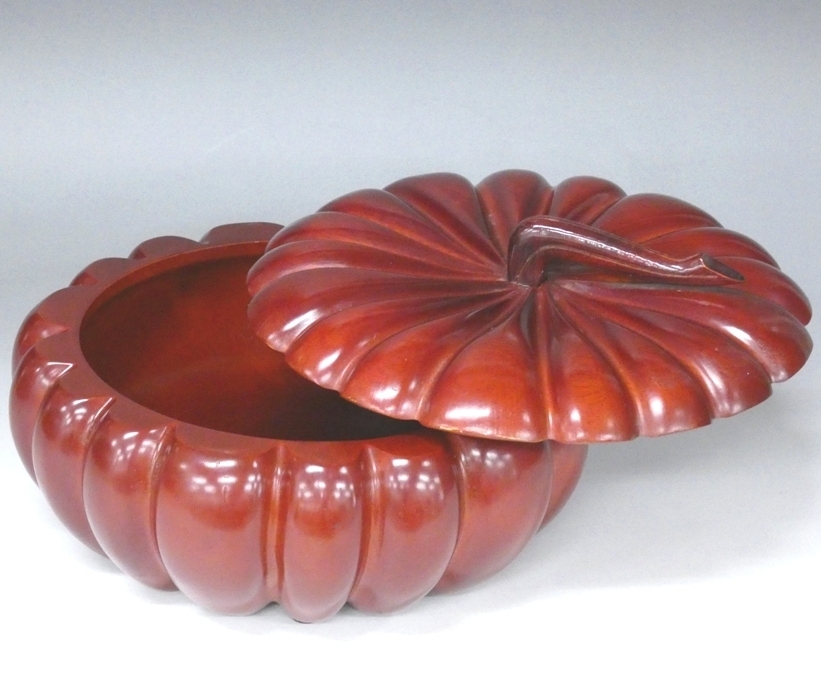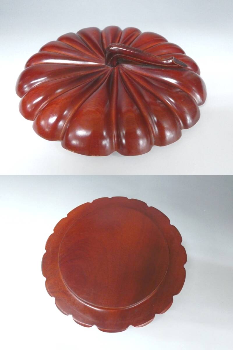 【インテリア小物】 かぼちゃ型収納ボックス 紅木製 約径24×高さ13cm フルーツ 菓子 茶葉入れ 小物入れ 装飾品置物 容器 |